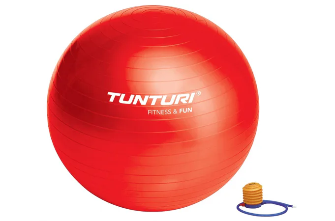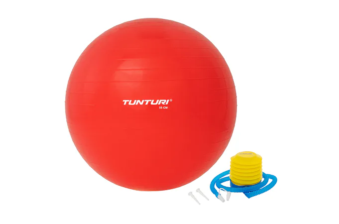 TUNTURI gymnastický míč červený s pumpičkou - pomůcka pro šetrné procvičení celého těla, slouží k procvičování stability, správného držení těla a k relaxaci. Tonizuje svalstvo celého těla a zvyšuje fyzickou kondici. Je ideální pro prevenci a minimalizaci bolesti dolní části zad.