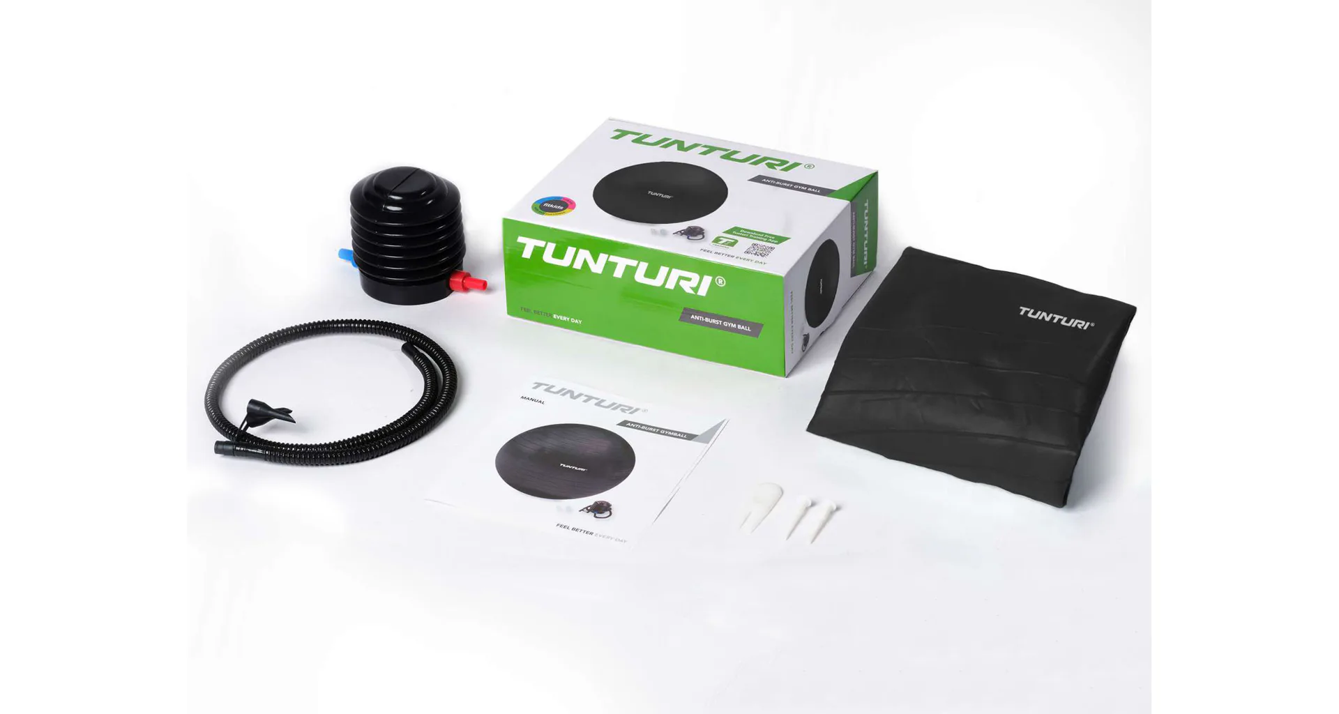 Skvělý zážitek ze cvičení s míčem TUNTURI neztratíte ani při velice snadné údržbě gymnastického míče. Díky pumpičce, která je dodávána v balení, budete mít svého pomocníka vždy připraveného.
