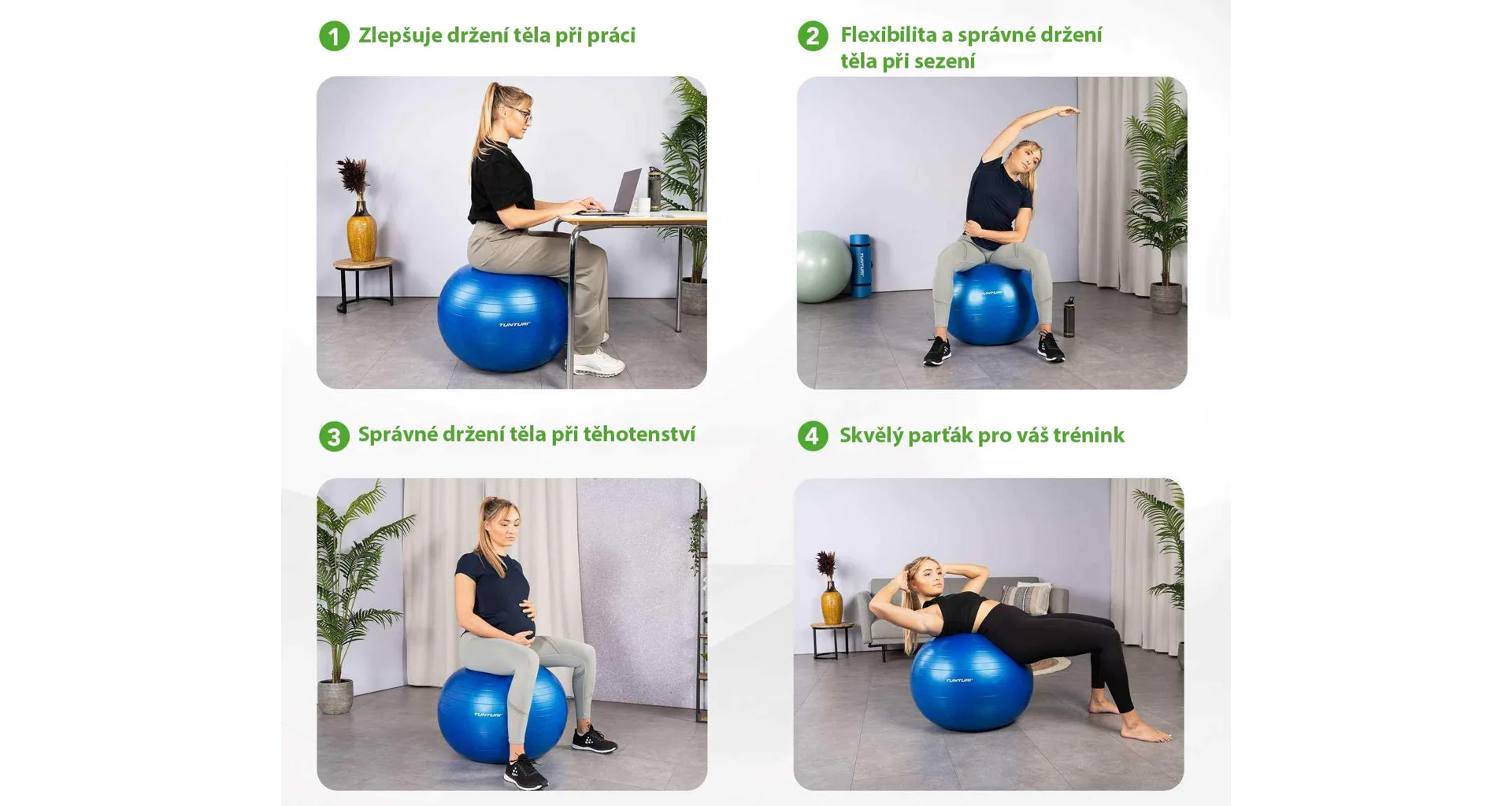 Gymnastický míč TUNTURI zesílený je univerzální a spolehlivý fitness doplněk navržený pro zlepšení tréninků a podporu zdraví. Je ideální pro zlepšení držení těla, posílení svalů a zvýšení rovnováhy a koordinace. Skvěle se hodí pro aktivní sezení, rehabilitaci nebo jako podpora během těhotenství. S maximální nosností 220 kg a protiskluzovým povrchem zajišťuje bezpečnost a stabilitu při každém použití. Míč je vyroben z vysoce kvalitního PVC s funkcí proti prasknutí, je odolný a snadno udržovatelný, což zaručuje pohodlí při používání.