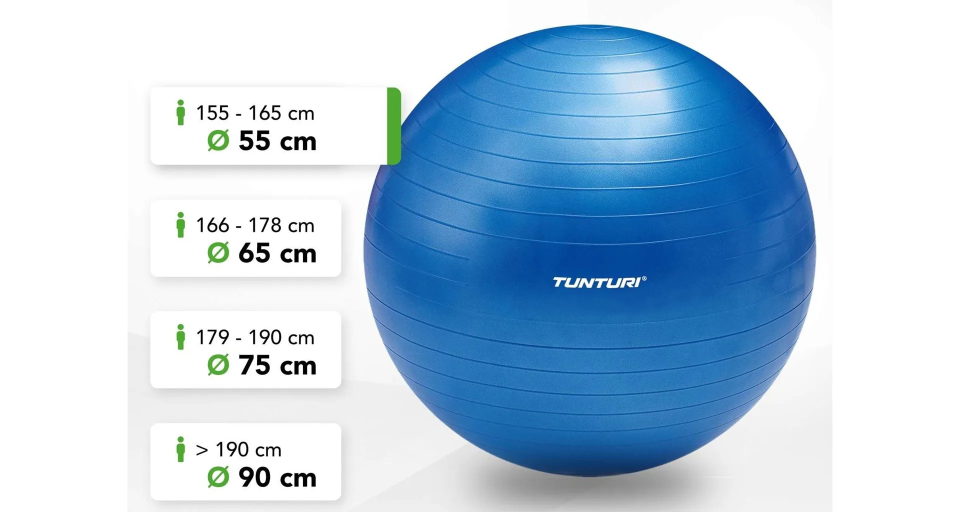 Pro volbu správné velikosti je nutné vycházet z tělesné výšky osoby, která na míči bude cvičit, což provedete jednoduchým výpočtem - podkolení úhel by měl při usednutí na míč svírat zhruba 100°.