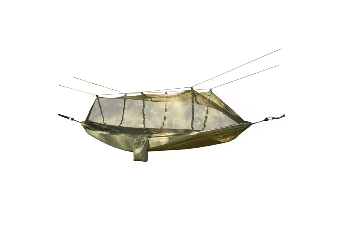 Závěsná Hamaka se stříškou YATE NIDUS proti dešti a síťkou proti hmyzu. Hamaka je vybavena speciální kapsou na vložení karimatky pro zvýšení tepelného komfortu. Snadné rozložení. Dodáváno včetně karabin a provazů.