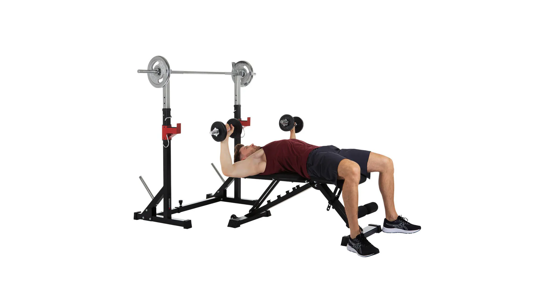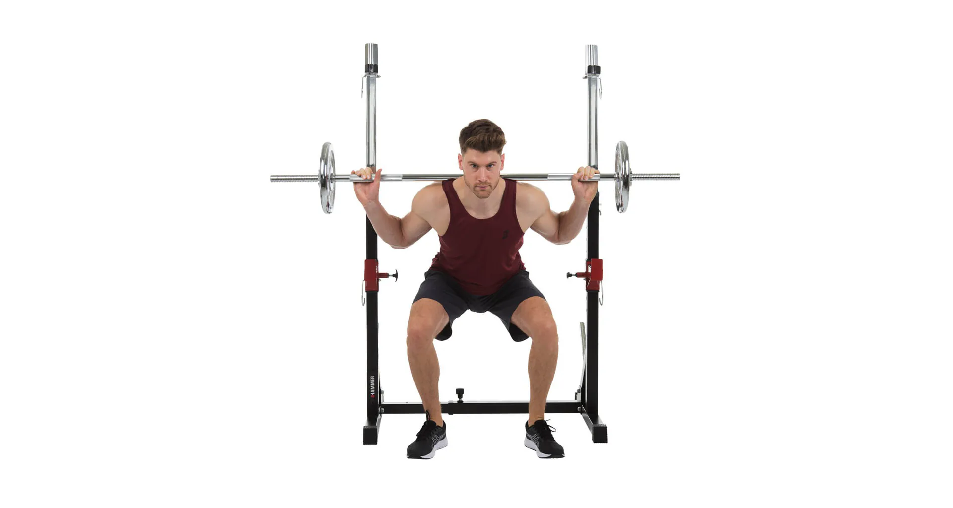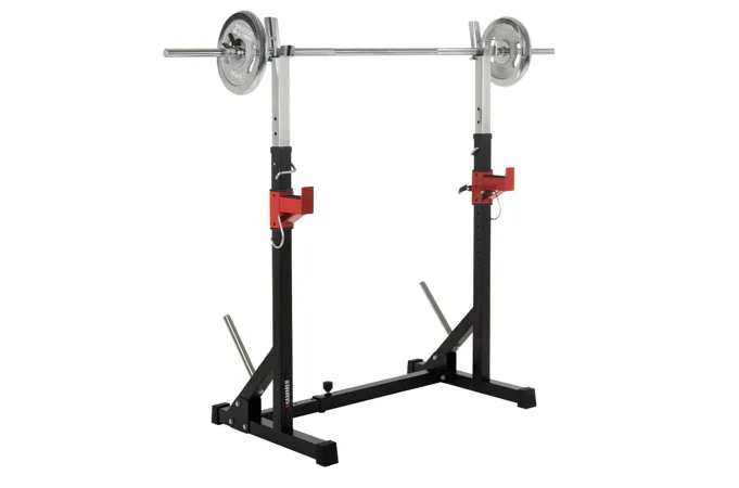 Díky své pevné struktuře a sofistikovanému designu je konstrukce naprosto stabilní, takže se můžete plně soustředit na trénink. Stojan na činku a bezpečnostní držáky na závaží udrží až 120 kg.