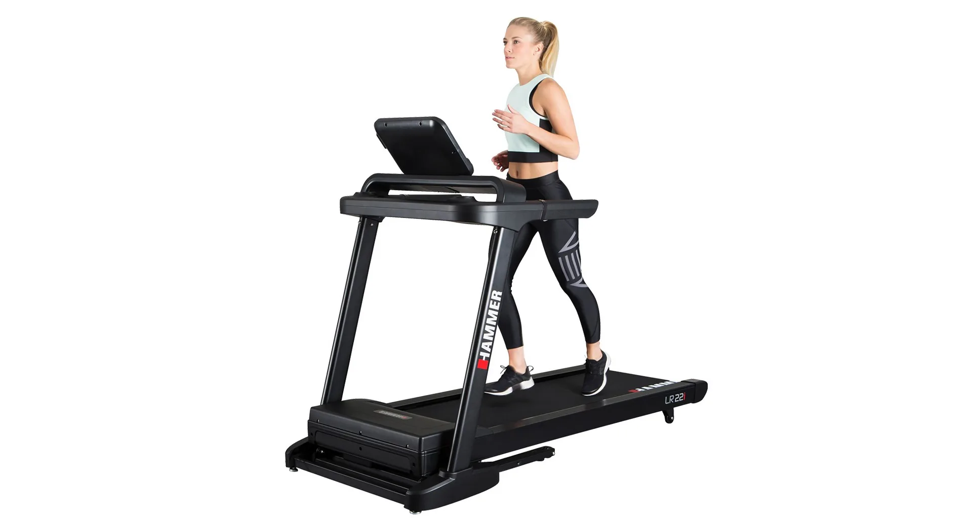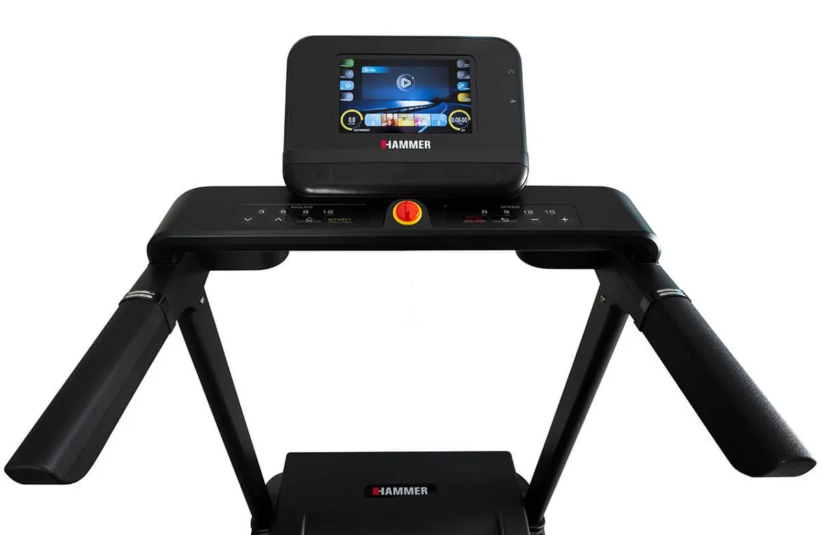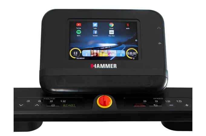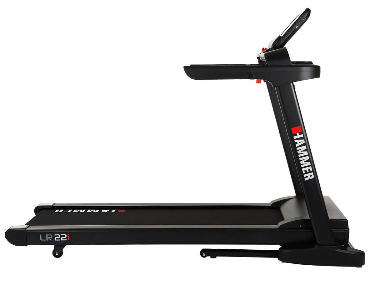 Hammer Life Runner LR22i TFT je vybaven přehledným počítačem, držákem na lahev, transportními kolečky, integrovanými snímači pro měření tepové frekvence a stop pojistkou