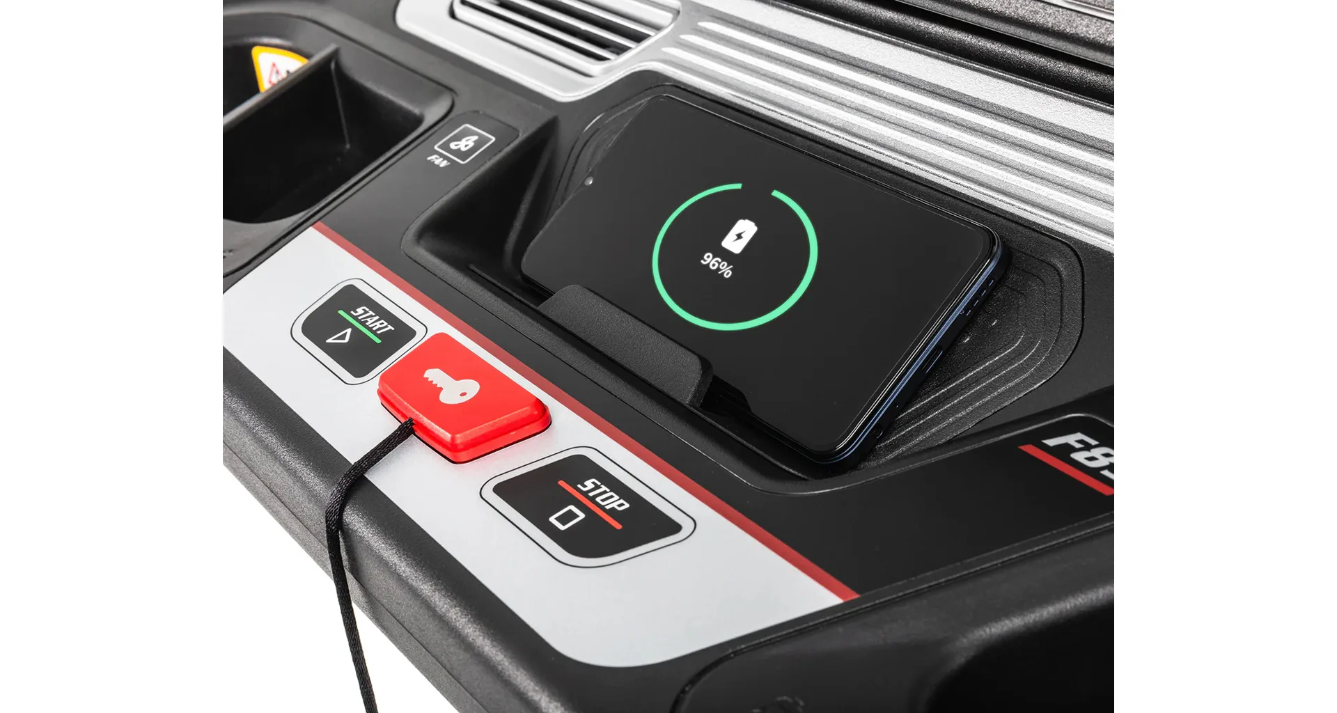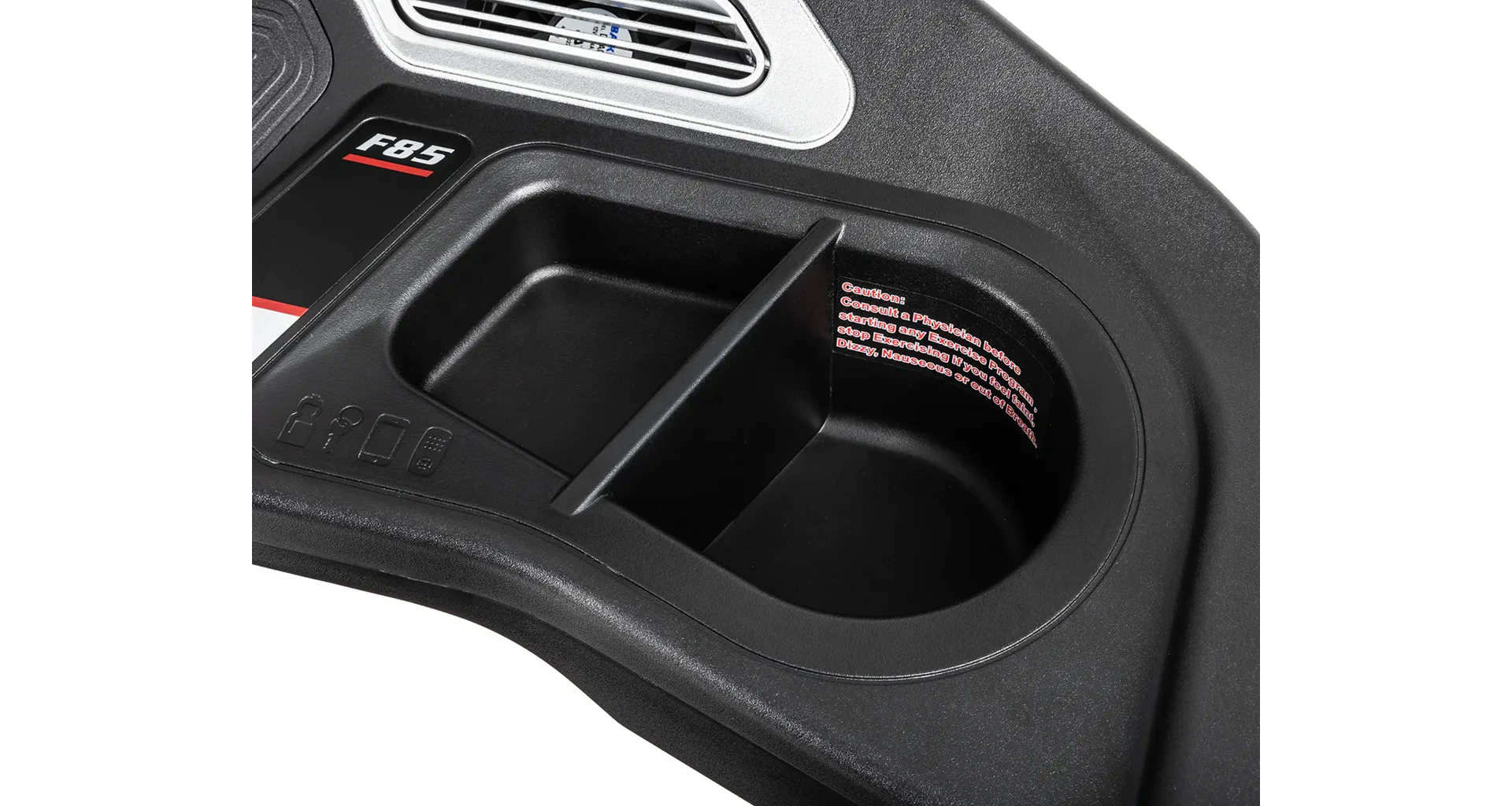 HAMMER SOLE F85 je vystrojen přehledým počítačem s 15,6" TFT dotykovým displejem, který nabízí 12 přednastavených programů a HRC programy. Měření tepové frekvence je možné prostřednictvím senzorů na madlech nebo bezdrátově 5 kHz hrudním pásem. Pro zpestření vašeho tréninku můžete běžecký pás přes Bluetooth připojit k tréninkovým aplikacím Kinomap a Zwift a udělat tak váš trénink pestřejší a zábavnější. Aplikace automaticky přizpůsobuje odpor a nastavuje sklon dle vybrané tratě. Nedílnou součástí počítače je i držák na tablet/smartphone, USB port pro nabíjení, reproduktory.