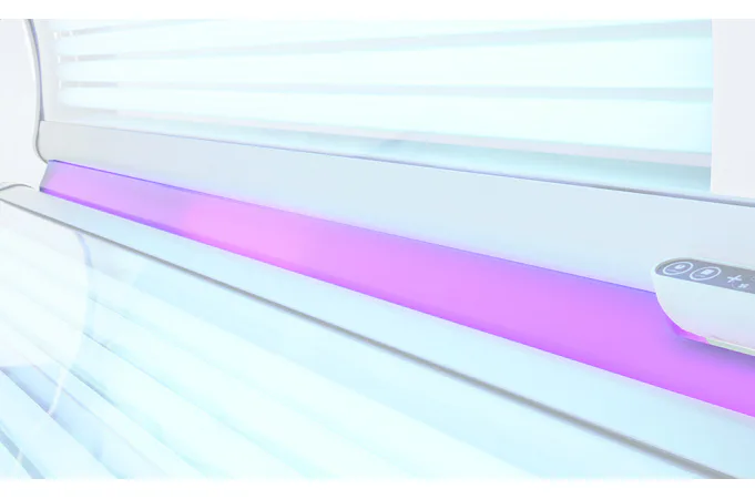HAPRO Connecting Shield Plus díky ambientnímu osvětlení vytváří vytváří relaxační atmosféru během opalování, kterou ještě podtrhne Soundbox, který umožňuje přehrávat hudbu.