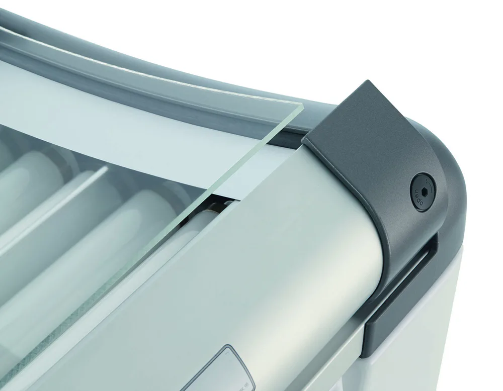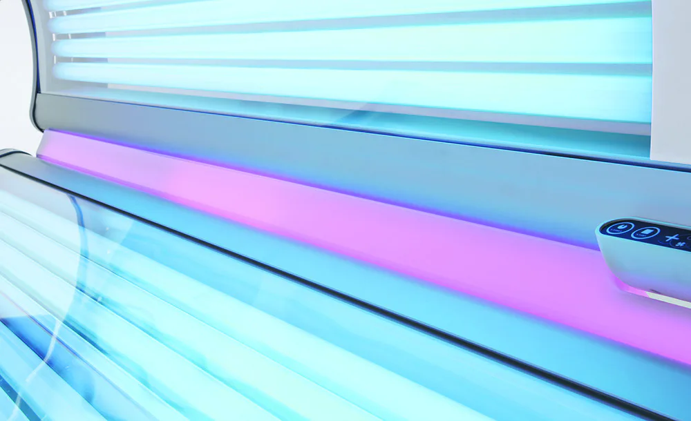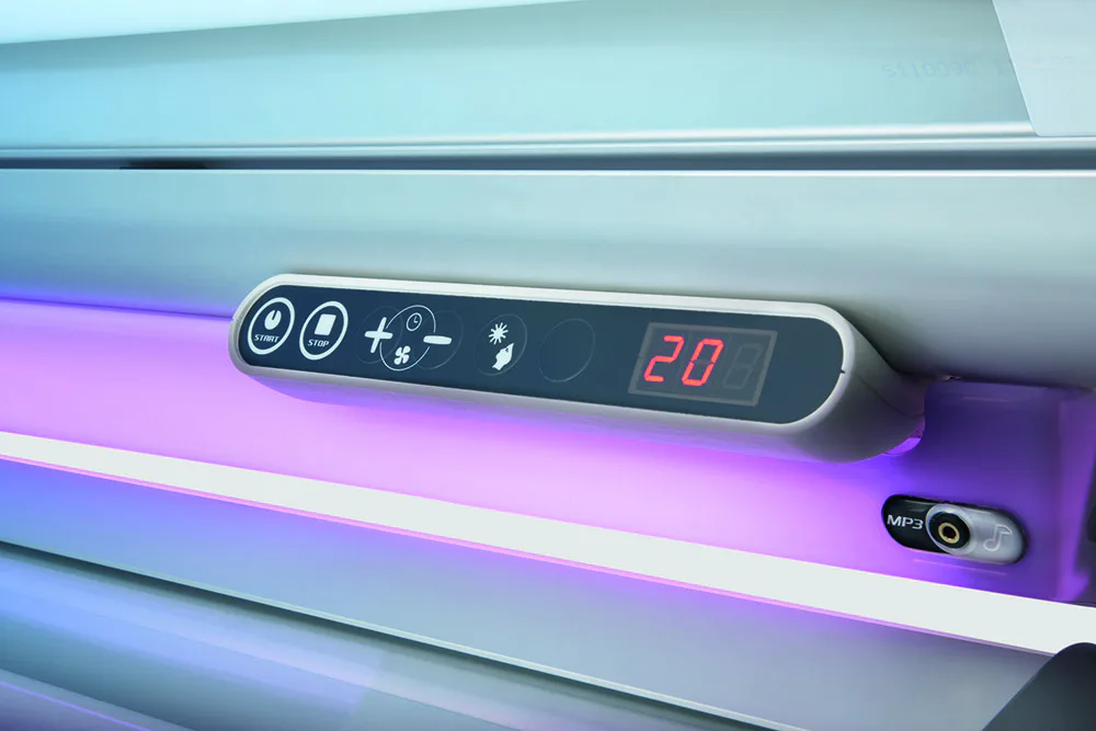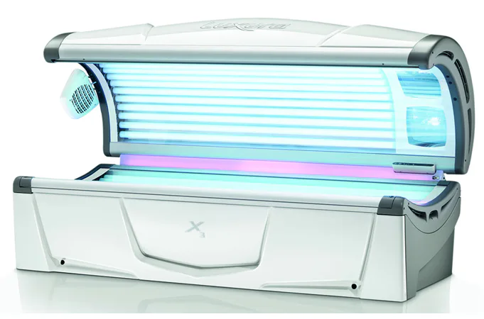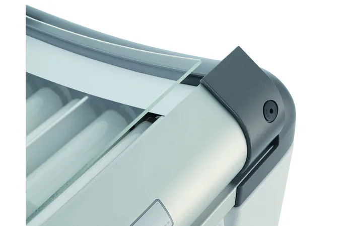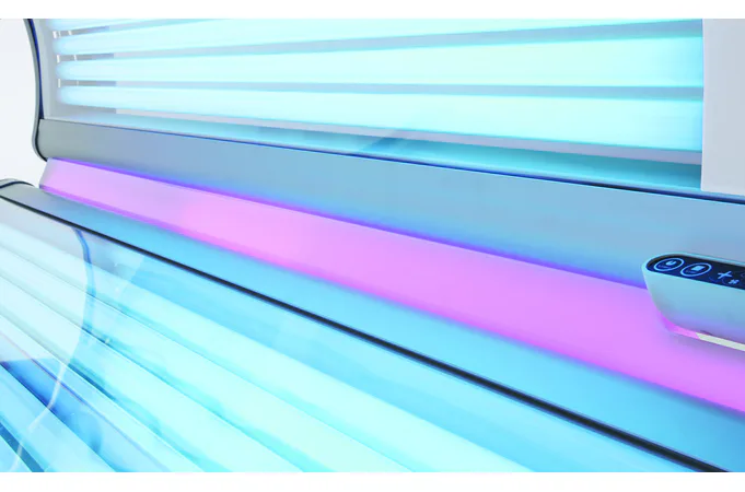 Solárium disponuje 18 extra výkonnými lampami o výkonu 160 W na víku, 14 XL lampami o výkonu 120 W ve spodní části a ve víku jsou navíc 3 vysokotlaké speciální žárovky na obličej s výkonem 400 W.