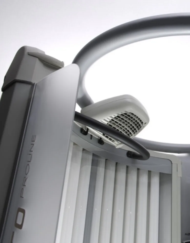 Je zde také možnost připojení recepčního ovladače. Proline V je standardně vybaveno jedním ventilátorem pro chlazení těla, ale za příplatek je možné si pořídit druhý ventilátor nebo strop s jedním centrálním ventilátorem a reproduktory. Při vývoji byl kladen důraz na to aby údržba tohoto solária byla snadná, rychlá a pohodlná.