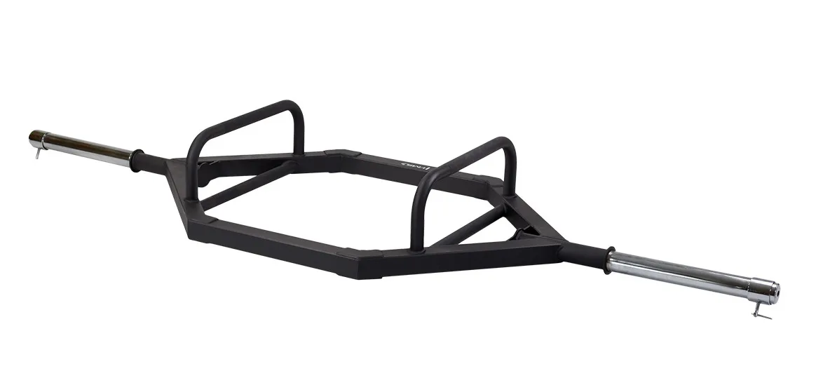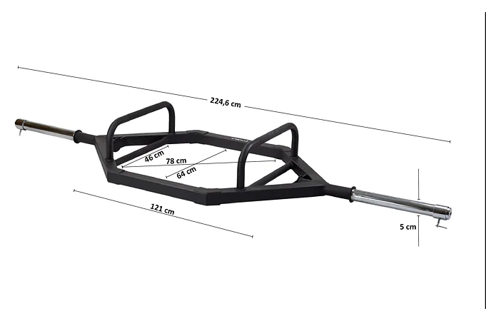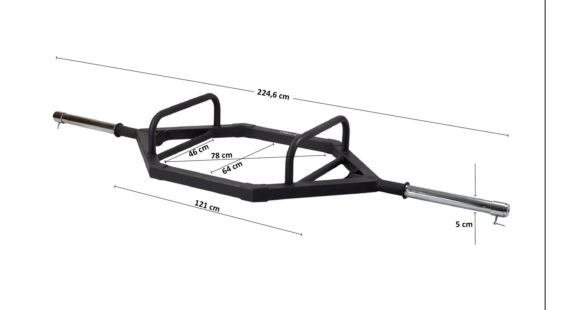 HEX TRAP BAR HMS GHX01 je olympijská osa disponující jedinečním designem. Úchopové části jsou opatřeny speciálním protiskluzovým materiálem pro maximální stabilitu při tréninku. Těžiště je přesně uprostřed konstrukce, takže nedochází k přetěžování páteře jako u klasické osy při mrtvém tahu apod.