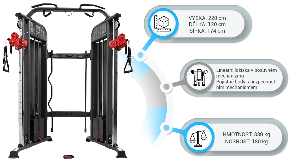 Stanice HMS ARES 1 je vyrobena s ohledem na bezpečnost, stabilitu a komfort při cvičení. Na konstrukci byly použity kvalitní, ocelové profily. Otočné kladky jsou vybaveny linearními ložisky pro tichý chod. Ergonomický tvar věže ARES 1 zaručuje nalezení optimální polohy pro každý cvik.