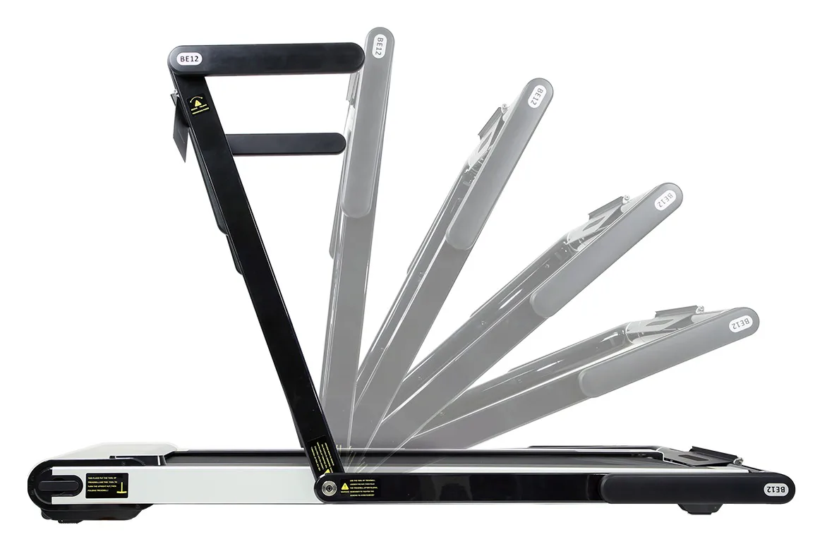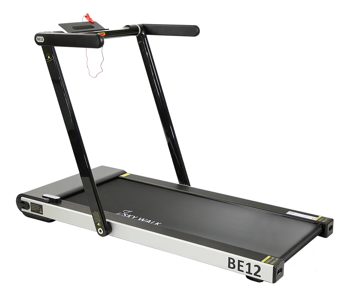 HMS BE12 SKY WALK černý patří mezi moderní designově progresivní běžecké trenažéry, který čerpá inspiraci z dnešních smartphonů. Trenažér je vybaven madly, které jdou snadno sklopit. Běžecký pás tak můžete uschovat například pod postel, nebo za skříň. V běžeckém trenažéru byl použit inovativní systém spojů pomocí šroubů. Další předností je systém absorbující otřesy během běhu.