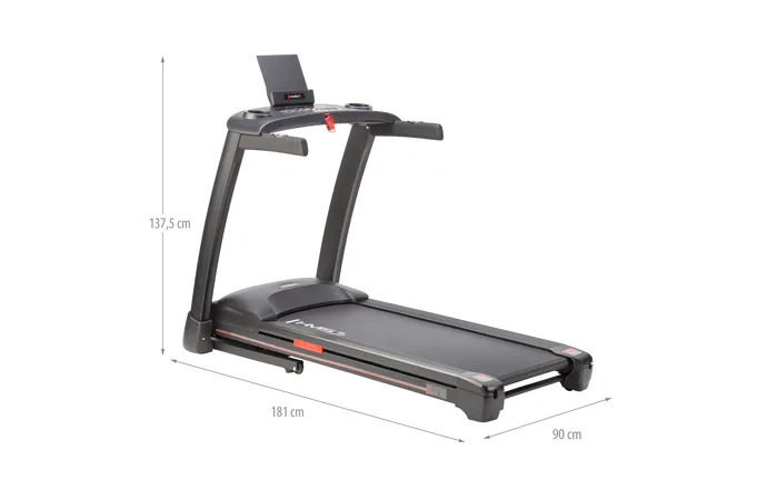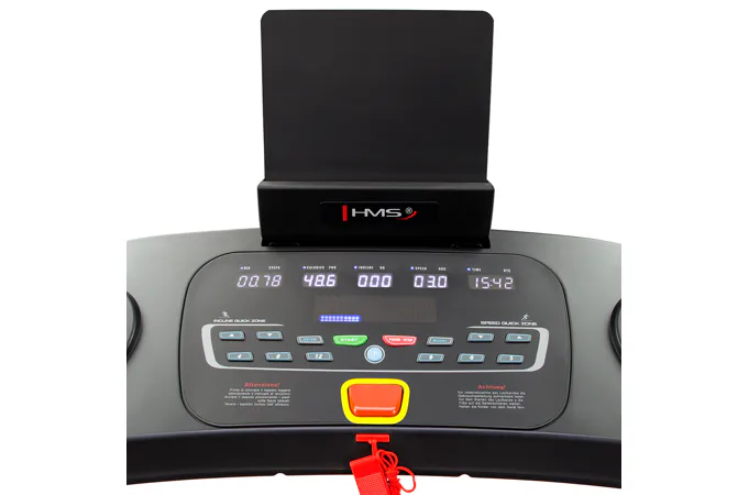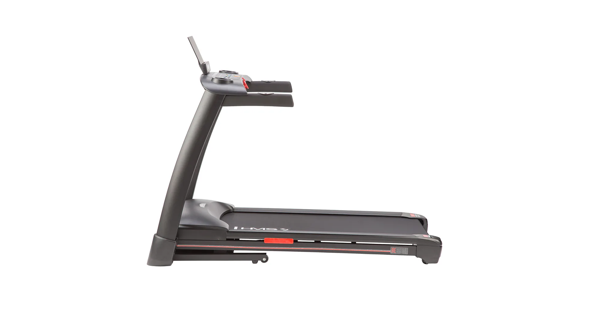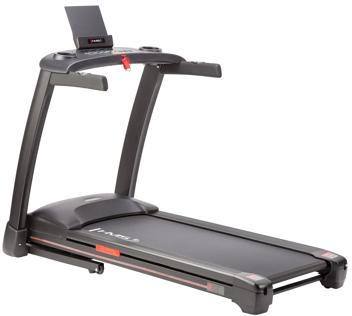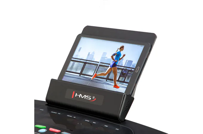 Trenažér HMS BE3200 je běžecký pás spadající do kategorie H a je tedy vhodný do domácího prostředí.Běžecká plocha o rozměrech 52 x 135 cm je umístěná na konstrukci, která je od hlavního rámu odpružená pomocí gumových silentbloků. Systém odpružení zajišťuje maximální pohodlí při tréninku a výrazně snižuje zatěžování kloubů.Rychlost běhu je plynule nastavitelná v rozsahu 1 - 16 km/h. Pás BE3200 je tak vhodný jak pro úplné začátečníky, tak i pro pokročilé běžce. Pro opravdu náročný trénink je trenažér vybaven elektronickou regulací náklonu v rozsahu 0 - 15° a lze jej plynule nastavit pomocí tlačítek na ovládacím panelu. Díky tomu, se můžeme věnovat maximálně tréninku a zároveň pohodlně nastavit úhel sklonu i rychlost běhu. Pás pohání DC motor o trvalém výkonu 2,5 HP.Ovládací konzole je vybavena 2 madly pro rychlý úchop s elektrodami pro snímání tepové frekvence, prostorem pro odložení láhve, stojánkem pro mobilní telefon nebo tablet, klávesnicí a displeje, které zobrazují jednotlivé hodnoty tréningu a průběh aktuálního programu.Klávesnice je vybavena tlačítky Start, Stop, Program, Mode a Enter. Dále se zde nachází ltačítka pro plynulou změnu rychlosti a skokovou změnu rychlosti na 3, 6 nebo 9 km/h a dále tlačítka pro plynulou změnu úhlu běžecké plochy a tlačítka pro skokovou změnu úhlu na 4, 8 nebo 12°.Počítač trenažéru BE3200 je vybaven LCD displeji, které zobrazují veškeré informace (čas tréninku, rychlost, úhel, vzdálenost, spálené kalorie, kroky a tepovou frekvenci). Pro trénink je k dispozici 18 programů a funkce pro měření fyzické kondice HRC. Řídící jednotka automaticky upravuje rychlost běhu a úhel plochy podle průběhu jednotlivých programů.