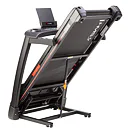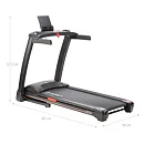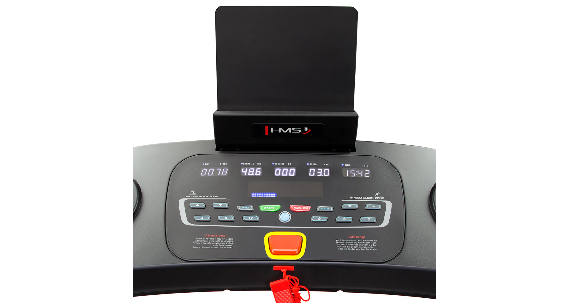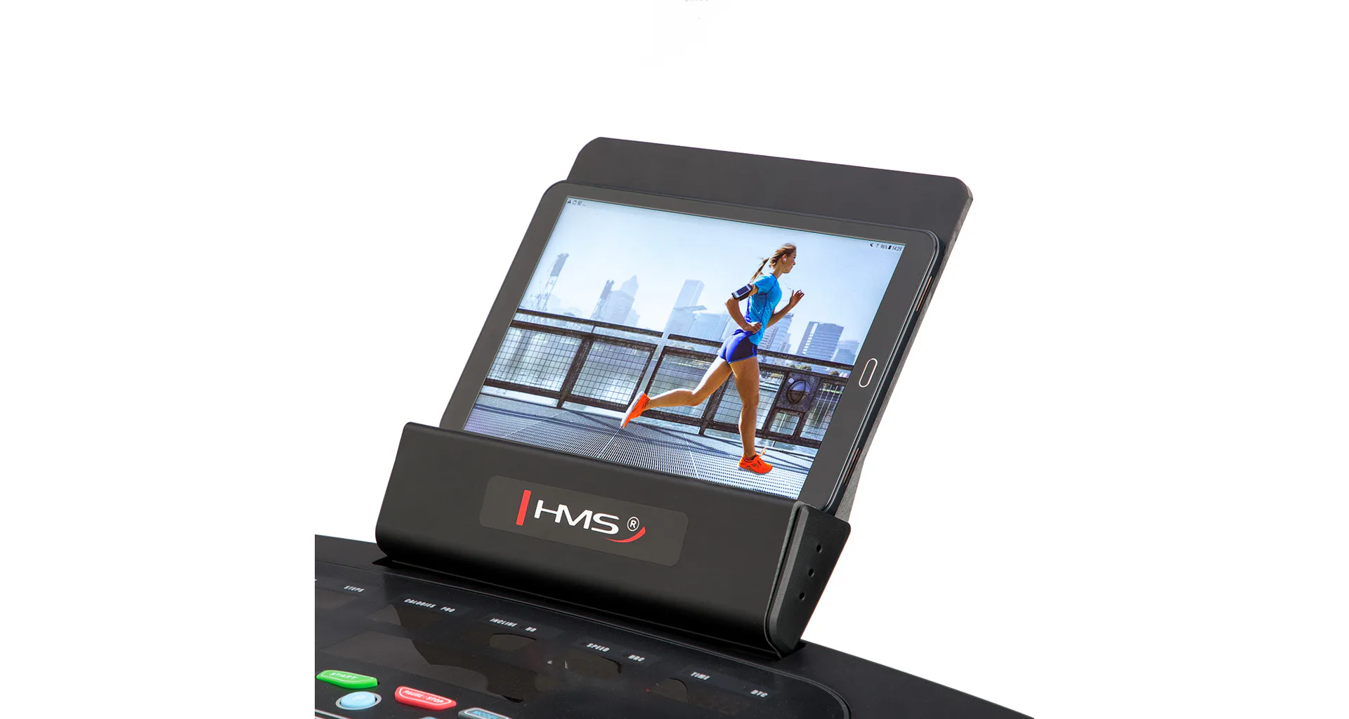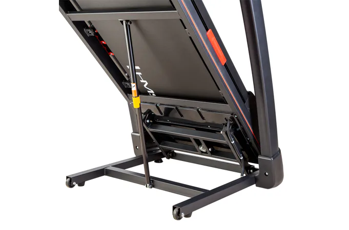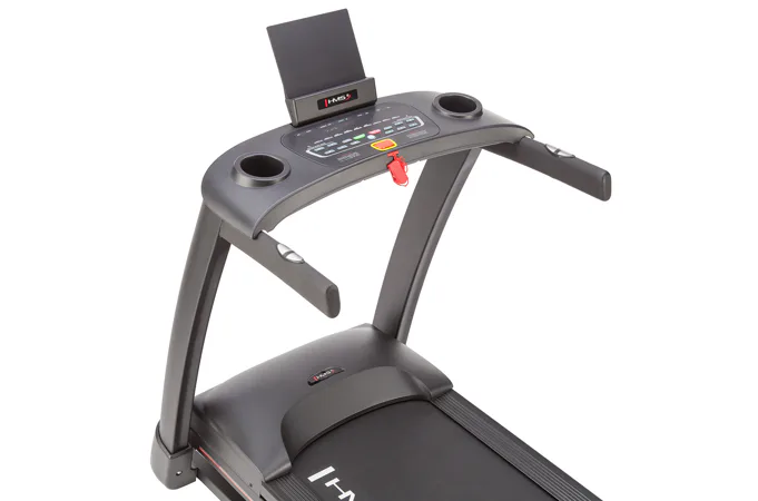 Trenažér HMS BE3200 je běžecký pás spadající do kategorie H a je tedy vhodný do domácího prostředí.Běžecká plocha o rozměrech 52 x 135 cm je umístěná na konstrukci, která je od hlavního rámu odpružená pomocí gumových silentbloků. Systém odpružení zajišťuje maximální pohodlí při tréninku a výrazně snižuje zatěžování kloubů.Rychlost běhu je plynule nastavitelná v rozsahu 1 - 16 km/h. Pás BE3200 je tak vhodný jak pro úplné začátečníky, tak i pro pokročilé běžce. Pro opravdu náročný trénink je trenažér vybaven elektronickou regulací náklonu v rozsahu 0 - 15° a lze jej plynule nastavit pomocí tlačítek na ovládacím panelu. Díky tomu, se můžeme věnovat maximálně tréninku a zároveň pohodlně nastavit úhel sklonu i rychlost běhu. Pás pohání DC motor o trvalém výkonu 2,5 HP.Ovládací konzole je vybavena 2 madly pro rychlý úchop s elektrodami pro snímání tepové frekvence, prostorem pro odložení láhve, stojánkem pro mobilní telefon nebo tablet, klávesnicí a displeje, které zobrazují jednotlivé hodnoty tréningu a průběh aktuálního programu.Klávesnice je vybavena tlačítky Start, Stop, Program, Mode a Enter. Dále se zde nachází ltačítka pro plynulou změnu rychlosti a skokovou změnu rychlosti na 3, 6 nebo 9 km/h a dále tlačítka pro plynulou změnu úhlu běžecké plochy a tlačítka pro skokovou změnu úhlu na 4, 8 nebo 12°.Počítač trenažéru BE3200 je vybaven LCD displeji, které zobrazují veškeré informace (čas tréninku, rychlost, úhel, vzdálenost, spálené kalorie, kroky a tepovou frekvenci). Pro trénink je k dispozici 18 programů a funkce pro měření fyzické kondice HRC. Řídící jednotka automaticky upravuje rychlost běhu a úhel plochy podle průběhu jednotlivých programů.