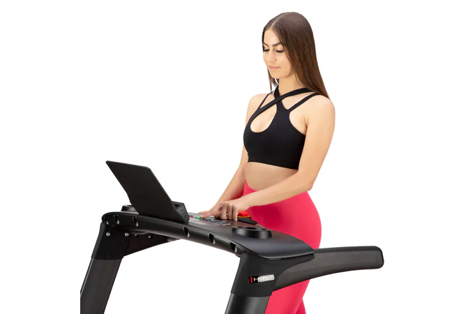 Ovládací konzole je vybavena 2 madly pro rychlý úchop, 2 madly s elektrodami pro snímání tepové frekvence, prostorem pro odložení láhve, stojánkem pro mobilní telefon nebo tablet, klávesnicí, 5 displeji pro zobrazení informací o tréninku a maticí, která zobrazuje průběh zvoleného programu.