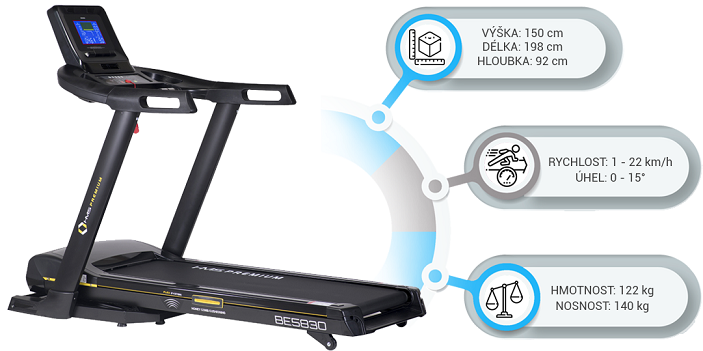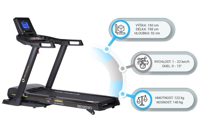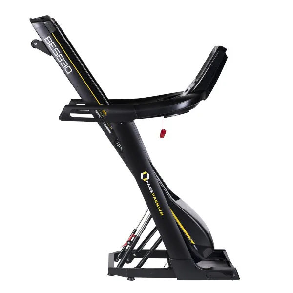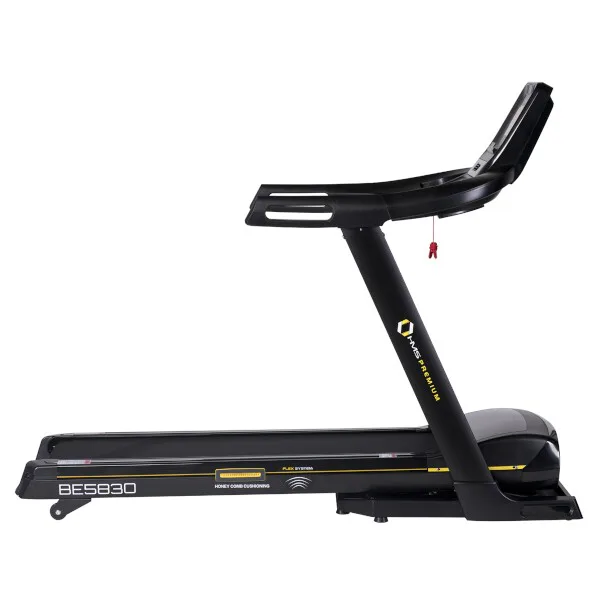 Trenažér HMS BE5830 je běžecký pás určený pro domácí použití.Prostorná běžecká plocha o rozměrech 51 x 145 cm je umístěná na konstrukci, která je od hlavního rámu odpružená pomocí vnitřního "polštáře" a dvou vnějších tlumičů, ty jsou vyrobeny z gumy tvaru včelích pláství. Funkční systém odpružení zajišťuje pohodlí během tréninku a výrazně snižuje zatěžování kloubů. Rychlost běhounu je plynule nastavitelná v rozsahu 1 - 22 km/h. Trenažér je tak vhodný jak pro úplné začátečníky, tak pro pokročilé běžce. Pro opravdu náročný trénink je trenažér vybaven elektronickou regulací náklonu v rozsahu 0 - 15° a lze jej plynule nastavit pomocí tlačítek na ovládacím panelu.
