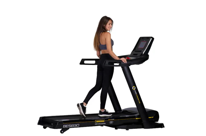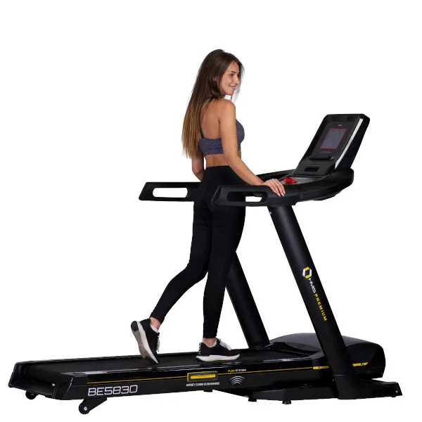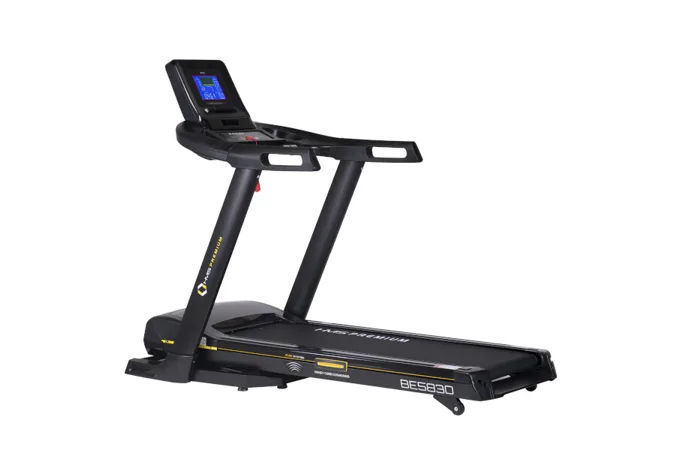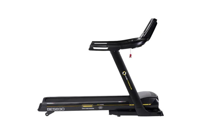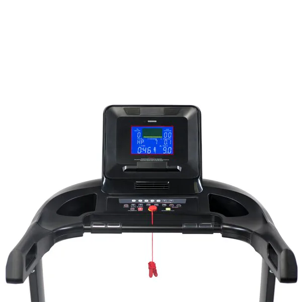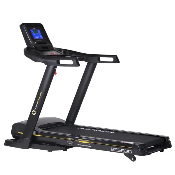 Ovládací konzole je vybavena 2-mi madly pro rychlý úchop, 2-mi madly s elektrodami pro snímání tepové frekvence, prostorem pro odložení láhve, stojánkem pro mobilní telefon nebo tablet, klávesnicí a monitorem. Klávesnice je vybavena tlačítky Start/Pause, Stop, Program, Mode. Dále se zde nachází tačítka pro plynulou změnu rychlosti a skokovou změnu rychlosti na 6, 9, 12, 15, nebo 18 km/h a o řadu výše se nachází tlačítka pro plynulou změnu úhlu běžecké plochy a tlačítka pro skokovou změnu úhlu na 4, 6, 8, 10 nebo 12°. Počítač trenažéru HMS BE5830 má 8" LCD displej, který zobrazuje veškeré informace (čas tréninku, rychlost, úhel, vzdálenost, spálené kalorie a tepovou frekvenci). Počítač také dokáže zobrazit procento tělesného tuku. Pro trénink je k dispozici 36 pevných a 3 uživatelsky definované programy. Běžeckou plochu trenažéru je možné zvednout a ušetřit tak drahocenné místo, když zrovna netrénujete.