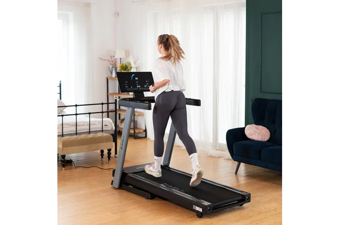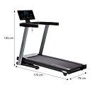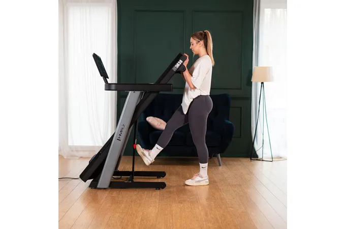 Trenažér má běžeckou plochu o rozměrech 142 x 50 cm a systém odpružení sestávající ze 6 vnitřních silentbloků, které minimalizují namáhání kloubů a zvyšují pohodlí při dlouhém tréninku. Běžeckou plochu trenažéru je možné zvednout a ušetřit tak drahocenné místo, když zrovna netrénujete, zároveň díky transportním kolečkům můžete trenažér lehce přemístit po místnosti.