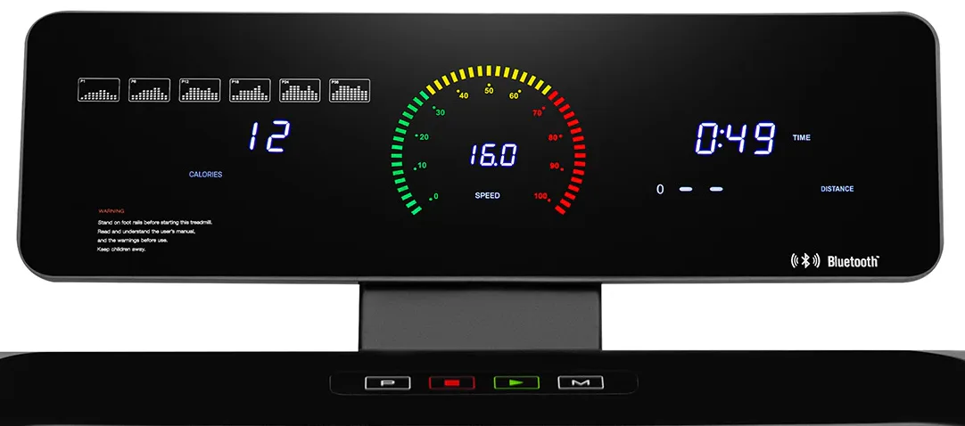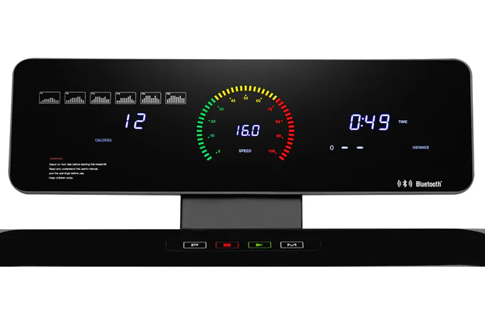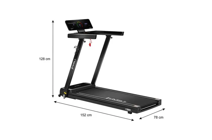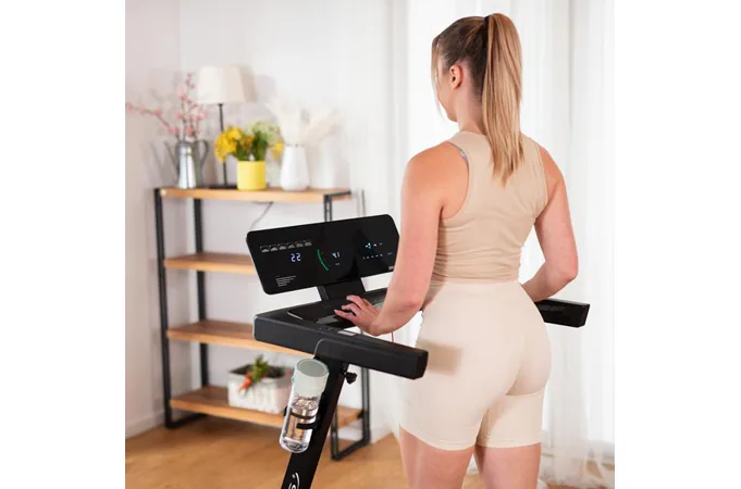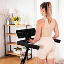 Běžecký pás BE5872 je rozšířen o držák na tablet a láhev, takže si můžete během tréninku vychutnat svůj oblíbený seriál a zároveň dodržovat pitný režim. Pro ještě větší požitek z cvičení má trenažér zabudovaný modul Bluetooth a reproduktor, který vám umožní poslouchat oblíbenou hudbu a používat tréninkové aplikace, jako jsou Kinomap, Zwift a AnyRun. Maximální nosnost běžeckého pásu je 100 kg.