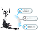 Nášlapy jsou opatřeby protiskluzovou gumou pro pohodlné cvičení. Příjemnou drobností je možnost zdvihnutí lyžin pro úsporu místa, když trenažér není používán. Velký LCD displej počítače přehledně zobrazuje veškeré důležité informace během tréninku.