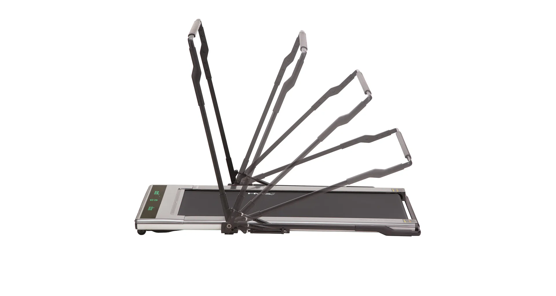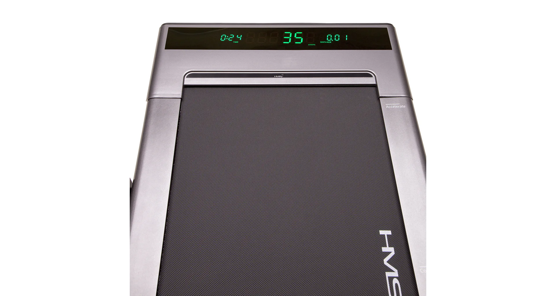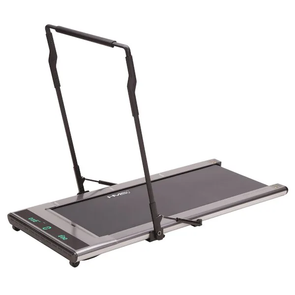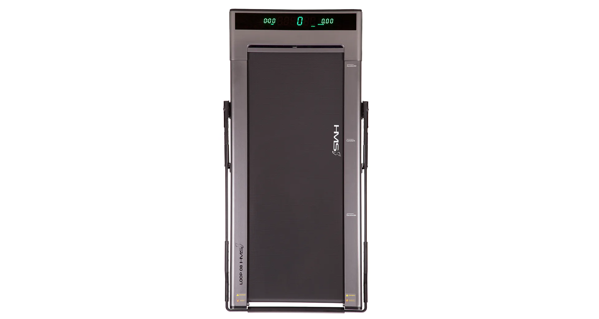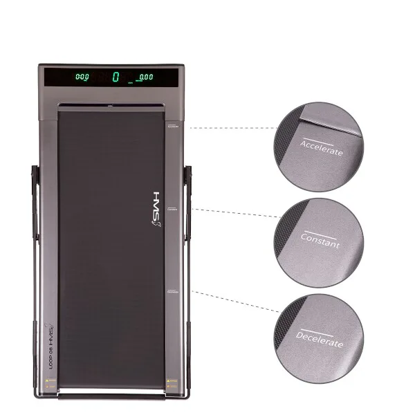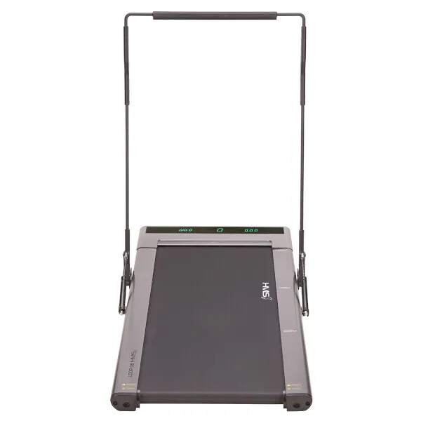 Běžecký trenažér LOOP08 je technologií XXI. století, moderní, lehký a má intuitivní použití. S použitím designu moderních mobilních telefonů, byl trenažér navržen v nejvíce elegantní podobě, tj. tenké tělo s vestavěným digitálním displejem - bez horního rámečku, velikého displeje a podpěradel. Po vertikálním umístění zabírá trenažér pouze 0,06 m2 povrchu. HMS LOOP08 šedý je velmi lehký a praktický, což umožňuje neomezené přenášení a uskladnění kdekoli. Má intuitivní systém spouštění tréninku a moderní systém řízení rychlosti. Stačí vyjít na pás trenažéru, abychom toto neuvěřitelné zařízení spustili. Když se přiblížíme k displeji, rychlost se zvýší, ale pokud budeme blíže zadní části trenažéru, pak se rychlost sníží. Displej informuje o vzdálenosti, době tréninku a počtu kroků. Model je velmi tichý, hladina hluku je pouhých 65 dB. V běžeckém trenažéru byl použit inovativní systém spojů pomocí šroubů. Další předností je systém absorbující otřesy během běhu. Sklopné madlo je osazeno plynovými písty, které zaručují dostatečnou pevnost ve zdvihnuté poloze.HMS LOOP08 je nejmenší a zároveň nejinstinktivnější běžecký trenažér na trhu.
