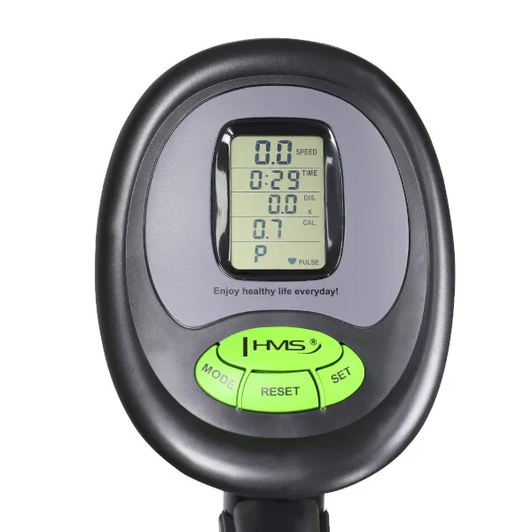 Magnetický rotoped M9239* PLUS patří ke kultovním strojům značky HMS pro domácí použití.Série rotopedů M9239 se vyznačuje robustní a stabilní konstrukcí, jednoduchým ovládáním a sedlem nastavitelným i v horizontální rovině.M9239 je vybaven 9-ti kilogramovým zátěžovým kolem. Regulace zátěže se provádí mechanicky pomocí otočného voliče, který přes lanko upravuje vzdálenost permanentního magnetu od setrvačníku. Tento systém regulace je bezúdržbový, tichý a rovnoměrný.Počítač disponuje velkým a přehledným displejem, který zobrazuje společně všechny údaje o tréninku, ty jsou zobrazeny přehledně pod sebou a není potřeba se proklikávat na konkrétní obrazovku s požadovaným údajem.Sedlo je nastavitelné jak vertikálně, tak i horizontálně. Pohodlné pedály jsou opatřeny nastavitelnými řemínky. Řídítka jdou naklopit a naleznete na nich elektrody pro měření tepové frekvence.
