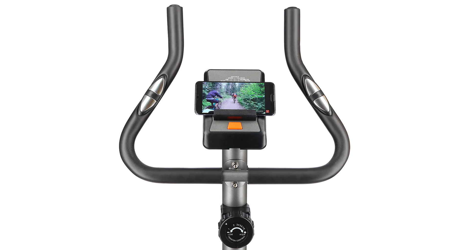 Počítač trenažéru je vybaven displejem, který zobrazuje všechny potřebné údaje - čas tréninku, rychlost, vzdálenost, spálené kalorie, celkovou vzdálenost a tepovou frekvenci. Pod displejem se nachází stojánek pro mobilní zařízení, na kterém můžete sledovat například oblíbený seriál. Pod stojánkem ještě naleznete tlačítko pro procházení jednotlivých dat, nebo pro funkci SCAN, která postupně zobrazuje všechny hodnoty.