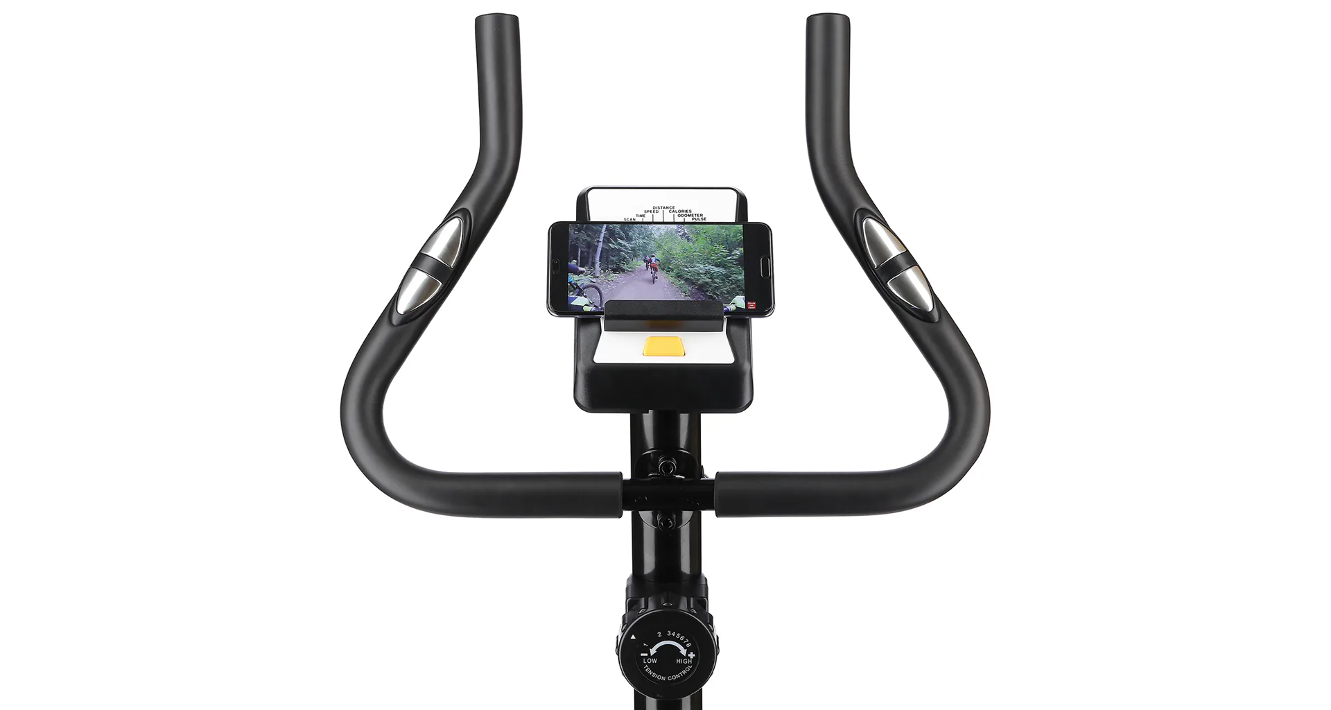 Počítač je vybaven displejem, který zobrazuje všechny potřebné údaje - čas tréninku, rychlost, vzdálenost, spálené kalorie, celková vzdálenost a tepová frekvence. Pod displejem se nachází stojánek pro mobilní zařízení, na kterém můžete sledovat například oblíbený seriál. Pod stojánkem ještě nalezneme tlačítko pro procházení jednotlivých dat, nebo pro funkci SCAN, která postupně zobrazuje všechny hodnoty.
