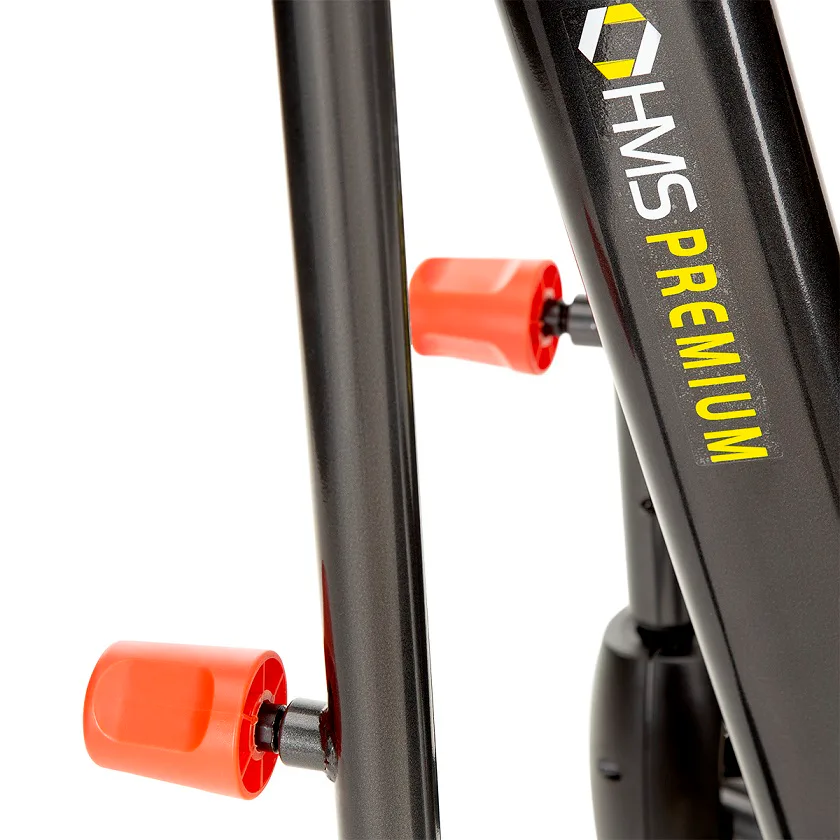 Trenažér HMS Premium H0601 má robustní, stabilní konstrukci, přední stabilizátor má kolečka pro snadný transport trenažéru a zadní stabilizátor disponuje nastavitelnými podložkami pro vyrovnání přístroje do roviny. Pedály jsou vybaveny systémem pro regulaci jejich náklonu, tato "vychytávka" umožňuje nastavení úrovně s jakou se do tréninku zapojují lýtka.Technické parametry: