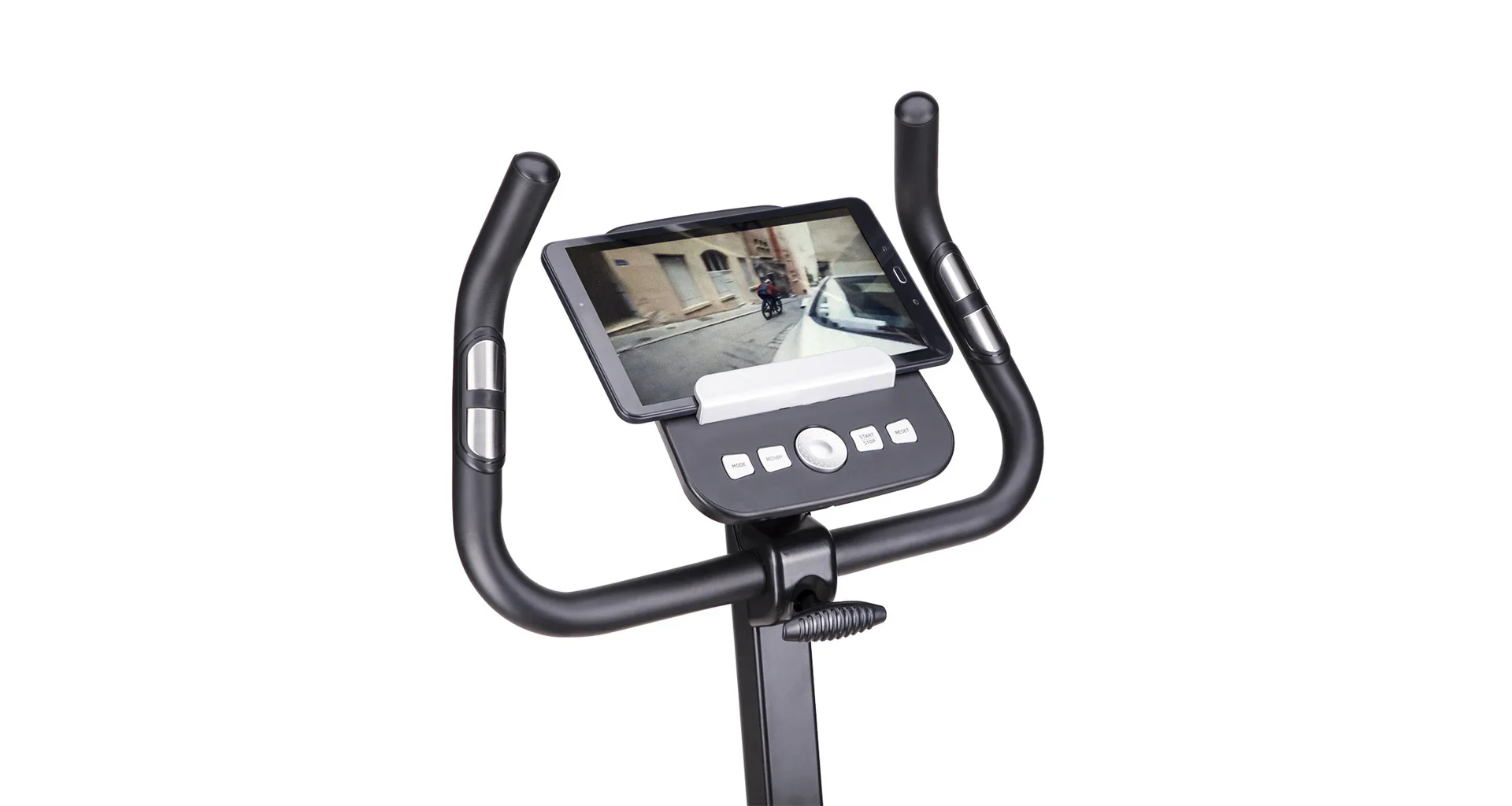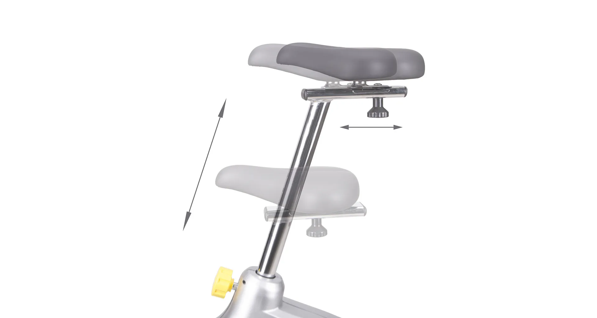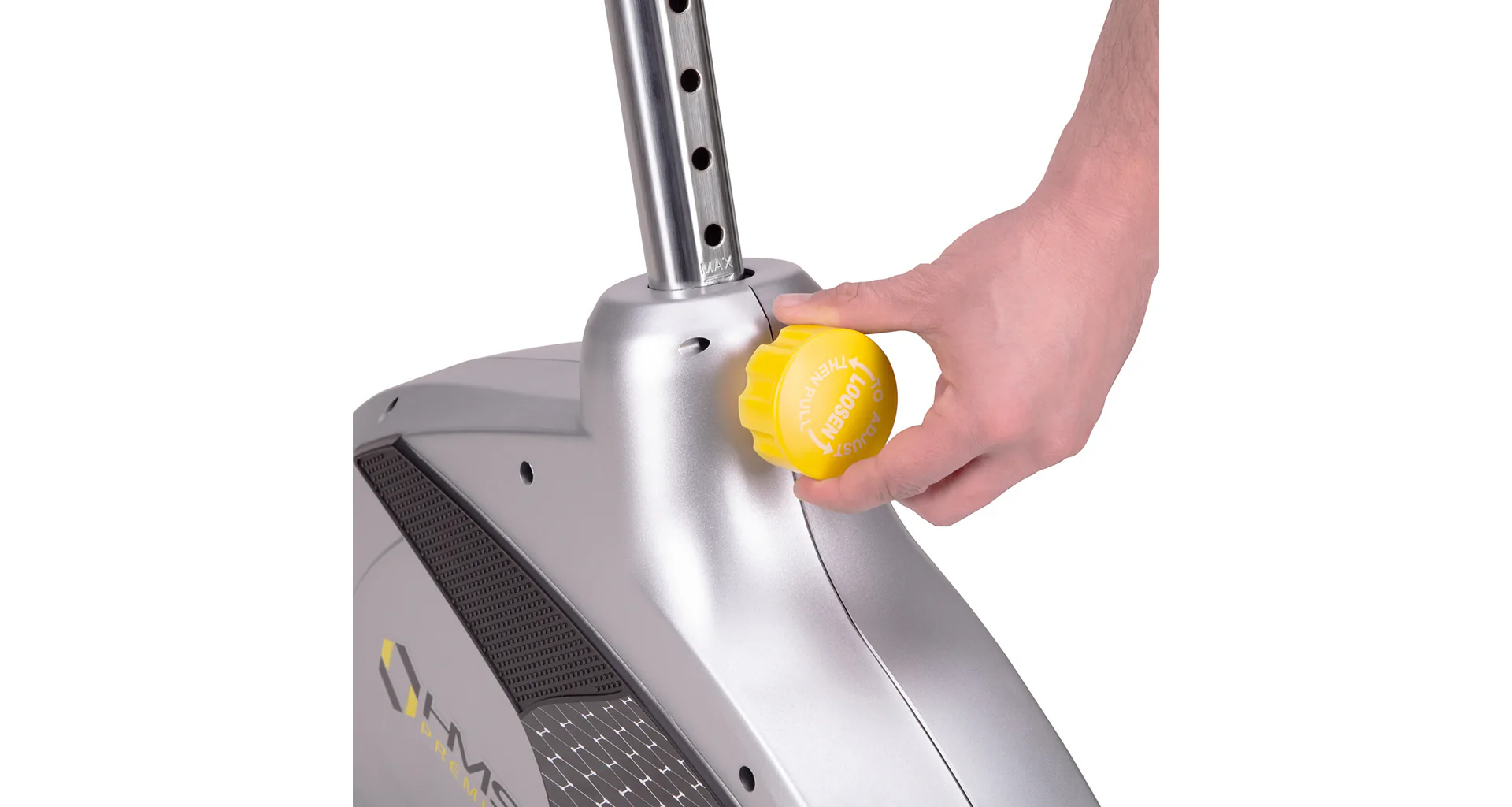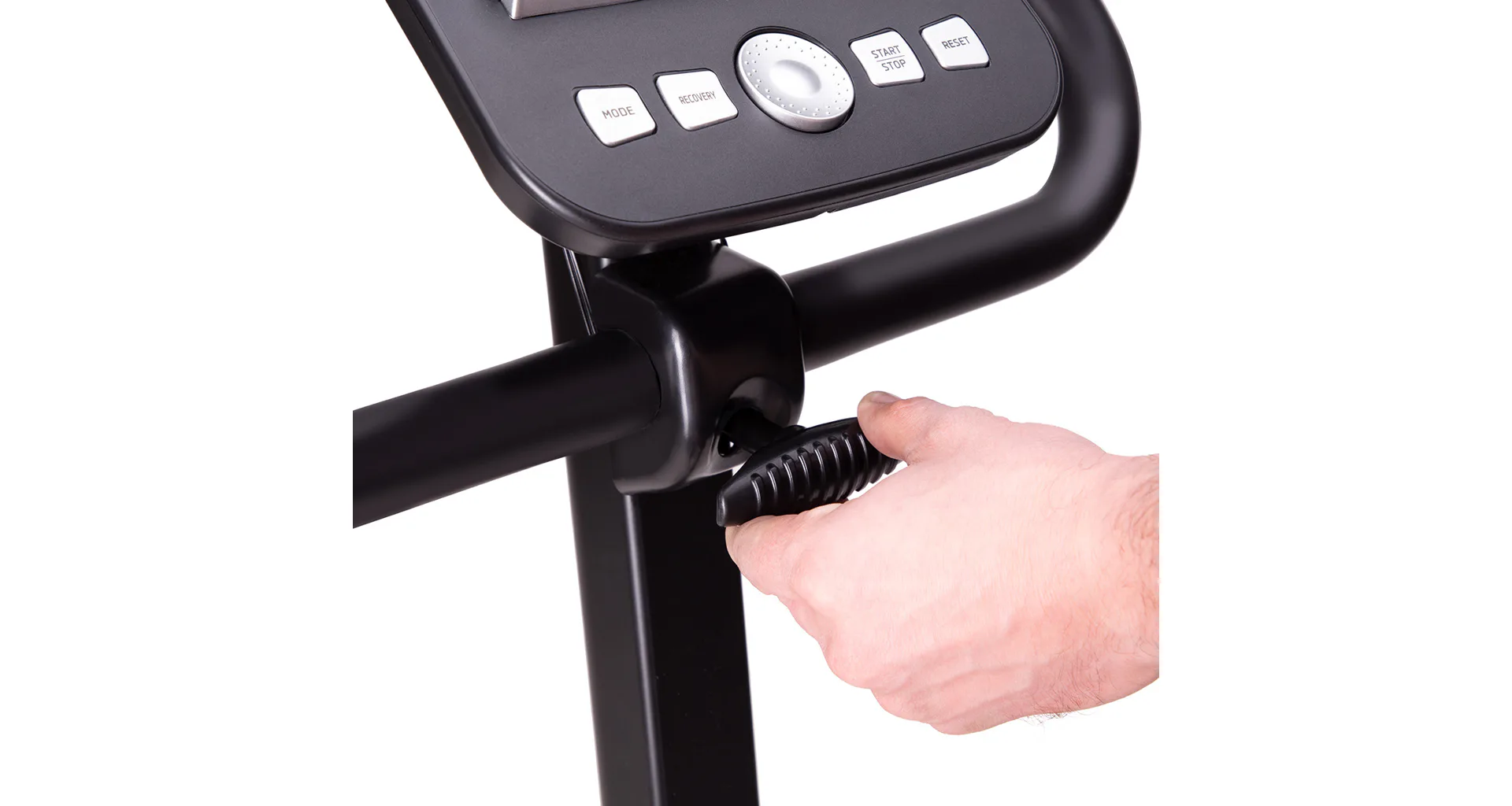 Řídítka s elektrodami pro snímání srdečního tepu, je možné naklápět. Sedlo je polohovatelné vertikálně do 9-ti poloh a v horizontální rovině je umístěno na kolejnici pro plynulý posun. Vzdálenost středu sedla od pedálů tak jde nastavit v rozsahu 64 - 90 centimetrů. Přední stabilizátor je vybaven kolečky pro snadné přesouvání. Zadní stabilizátor zase nabízí výškově nastavitelné podložky pro vyrovnání trenažéru do roviny.