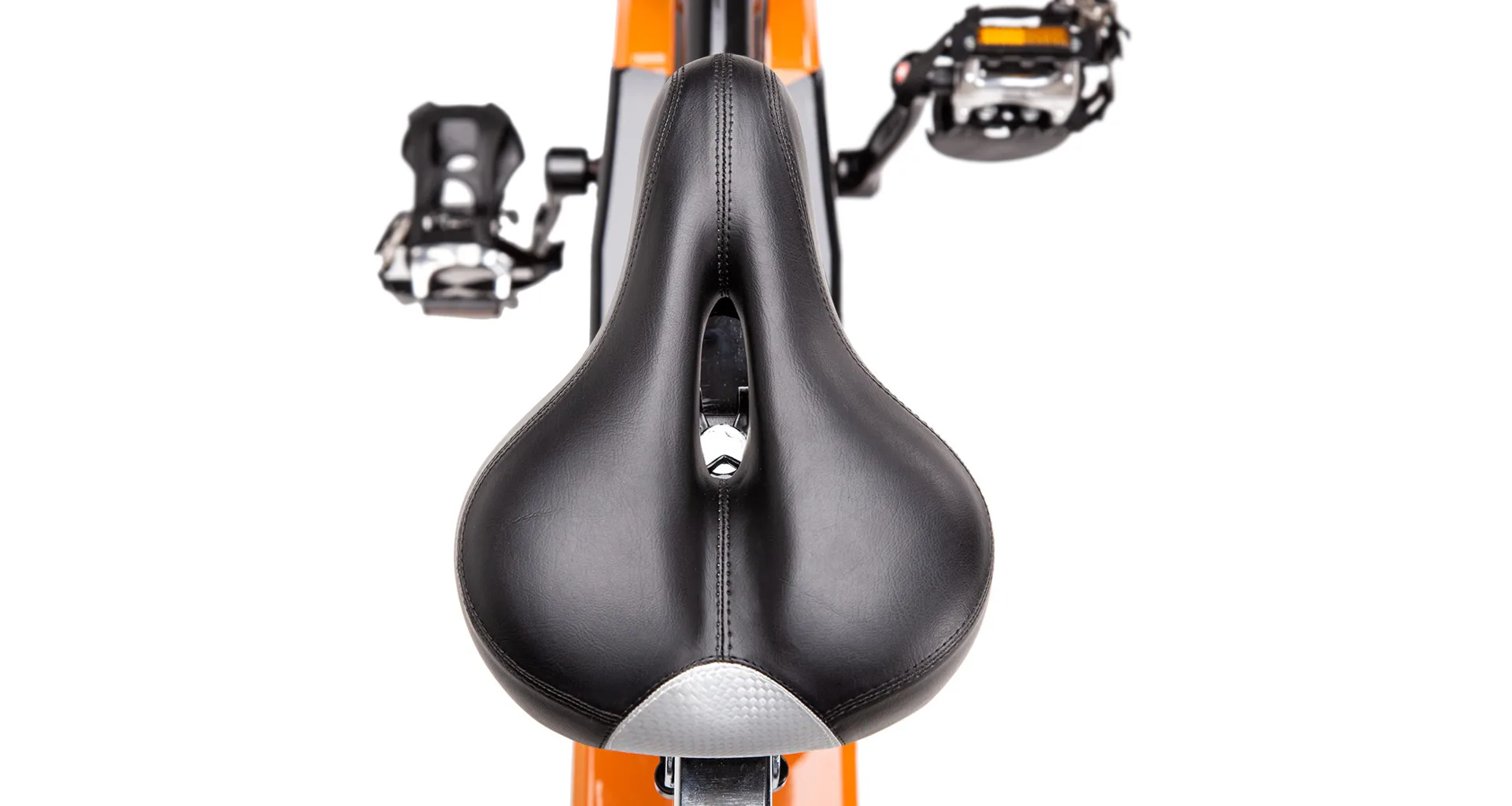 Zátěžové kolo má hmotnost 20 kilogramů. Odpor je generován přítlačnou brzdou, která je plynule nastavitelná pomocí mechanického regulátoru pod řídítky. Pro maximální komfort během tréninku jsou řídítka opatřeny loketními opěrkami a sedlo je ergonomicky tvarované s ventilačním otvorem. Řídítka i sedlo jsou polohovatelné ve vertikálním i horizontálním směru. Ocelové pedály jsou osazeny klasickými košíky s nastavitelným řemínkem, které zajišťují pevnou polohu chodidla.