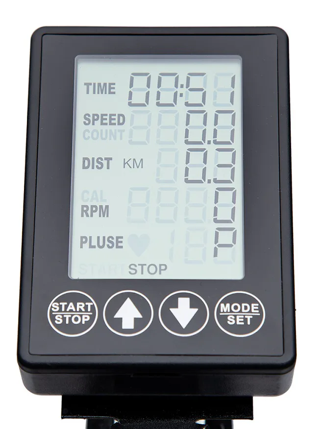 Velký a přehledný displej počítače zobrazuje veškeré údaje přehledně pod sebou, takže již není potřeba se překlikávat přes jednotlivé hodnoty. Počítač navíc disponuje rozhraním Bluetooth pro spojení s mobilní aplikací, ve které můžete sledovat své tréninky a postupy. Konzole na řídítkách umožňuje odložení mobilního telefonu nebo tabletu a až dvou láhví.
