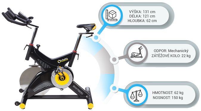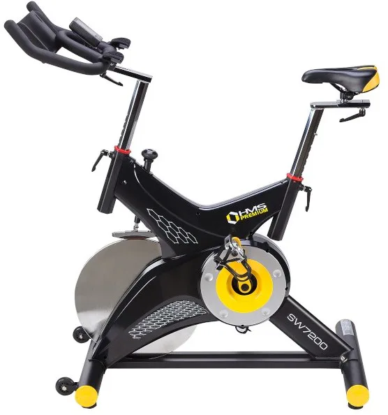 Zátěžové kolo HMS Premium SW7200 má hmotnost 22 kilogramů. Odpor je generován přítlačnou brzdou, která je plynule nastavitelná pomocí mechanického regulátoru po řídítky. Pro maximální komfort během tréninku jsou řídítka i sedlo polohovatelné ve vertikálním i horizontálním směru.
