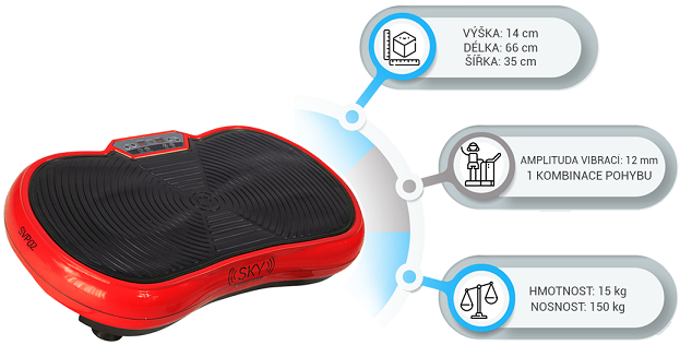 Rozměry vibrační plošiny jsou (dxšxv): 66 x 35 x 14 cm a hmotnost 15 kg, takže není problém ji pohodlně uložit pod postel apod., aby nezabírala zbytečný prostor.