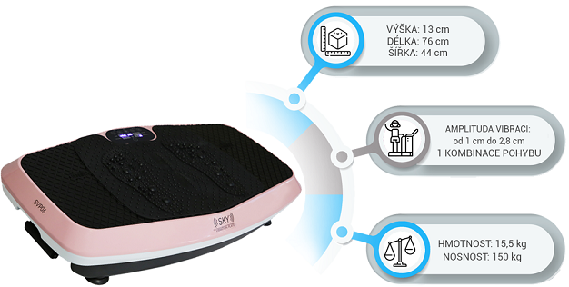 Rozměry vibrační plošiny jsou (dxšxv): 76 x 44 x 13 cm a hmotnost 15,5 kg, takže není problém ji pohodlně uložit pod postel apod., aby nezabírala zbytečný prostor.