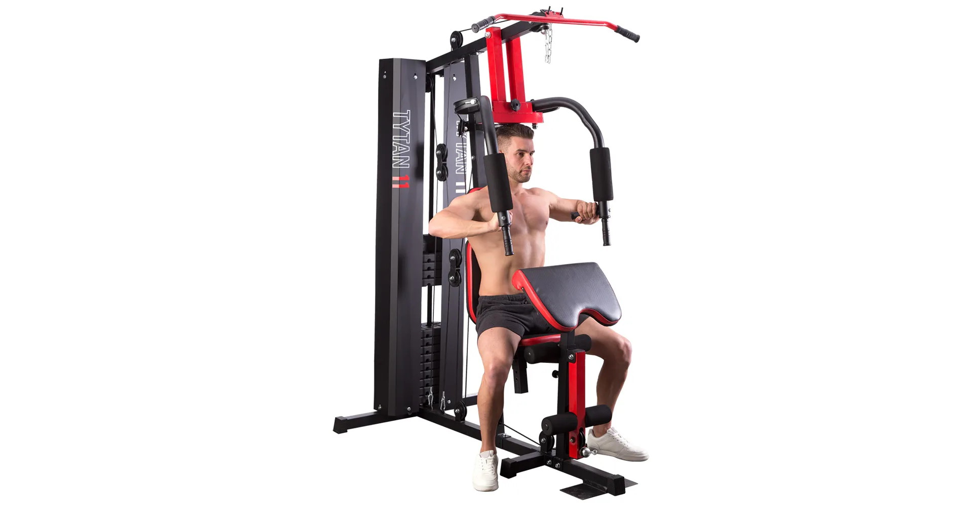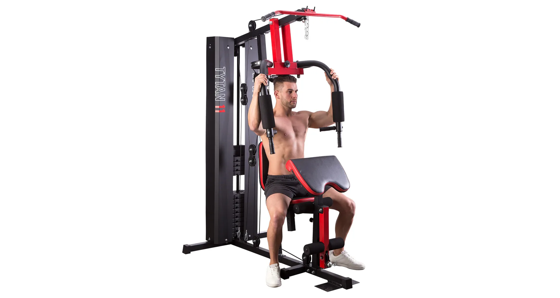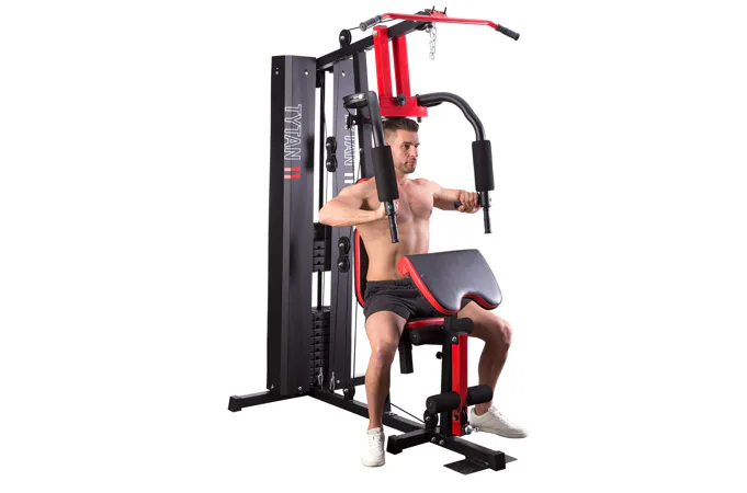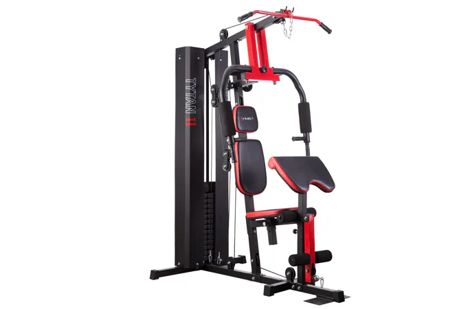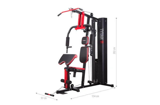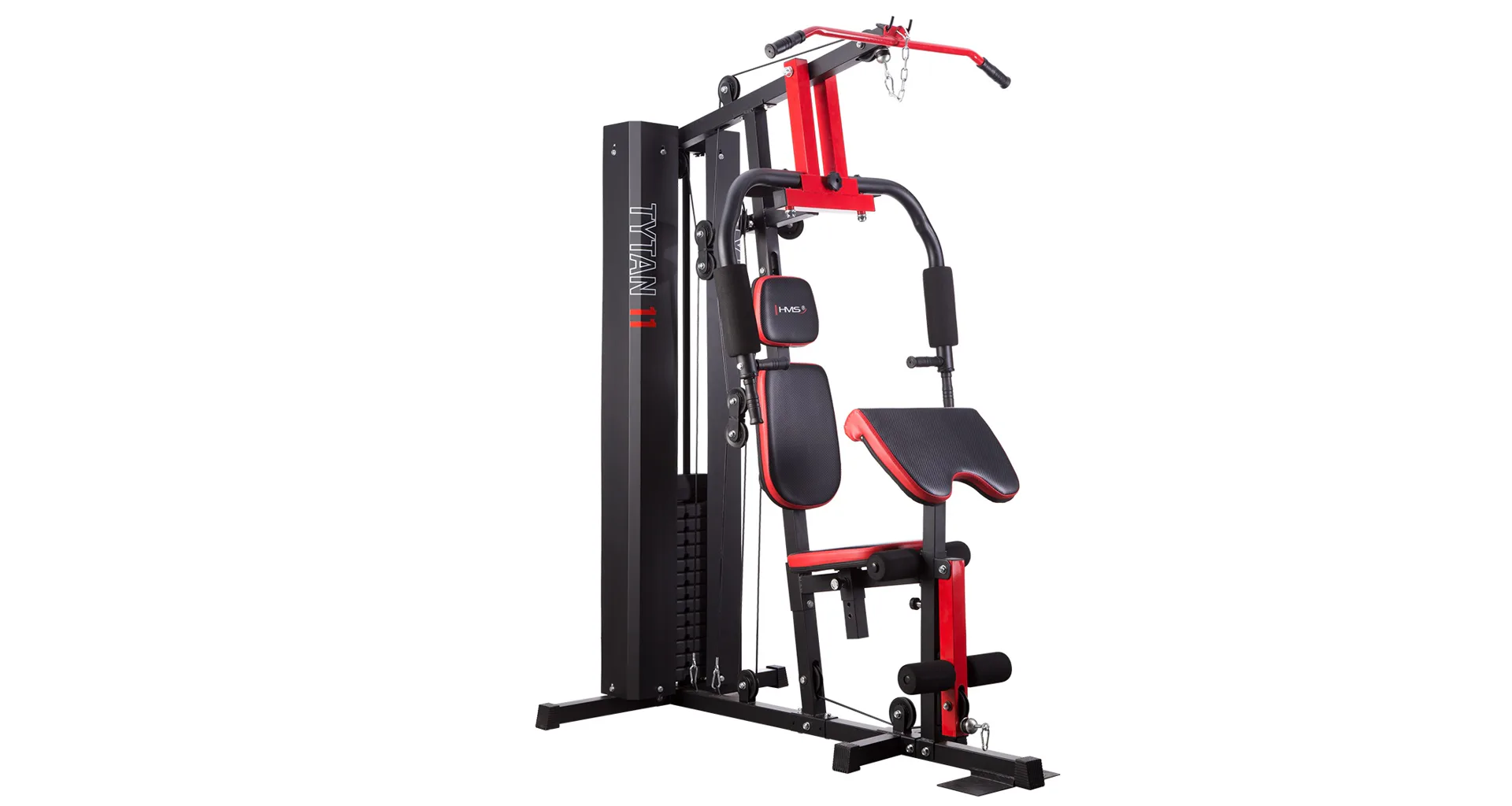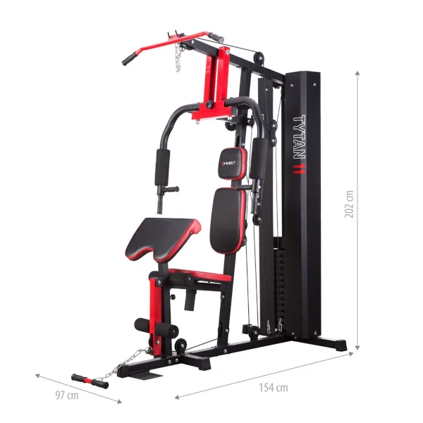 Posilovací věž HMS Tytan 11 je multifunkční nástroj pro komplexní trénink v domácích podmínkách. Konstrukce je vyrobena z kvalitní oceli. Rám je profilován, aby byl stabilní a vydržel maximální zatížení. Čalounění sedáku, opěry a modlitebníku je ušito z pevného materiálu, který odolá oděru a vlhkosti. Pro poutavý a moderní vzhled byla zvolena kombinace červené a karbonu.Tréninkem na Tytanu 11 můžeme posilovat téměř všechny svalové skupiny. Tlaky, motýlek, horní kladka, spodní kladka, modlitebník, hrazda a předkopávání nám umožňují trénovat svaly ramen, hrudníku, zad, horních a dolních končetin.Posilovací věž Tytan 11 je komplexní stroj, který nezabírá mnoho místa a díky nastavitelnému sedáku a modlitebníku se přizpůsobí každé postavě. Zátěž si můžeme nastavit v rozsahu od 4,8 do 67 kilogramů pomocí snadného přesunutí jistícího kolíku. Závaží je odstupňováno po 4,8 kilogramech.
