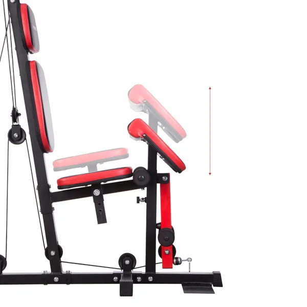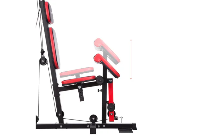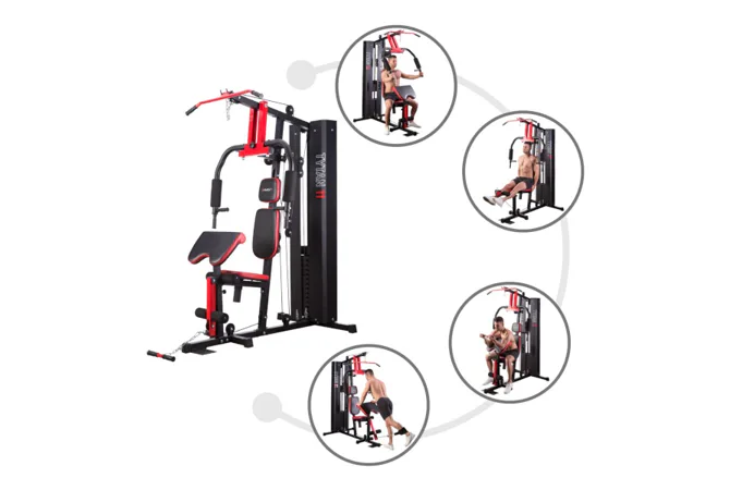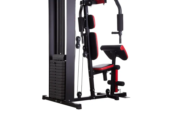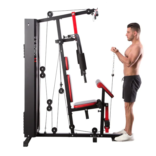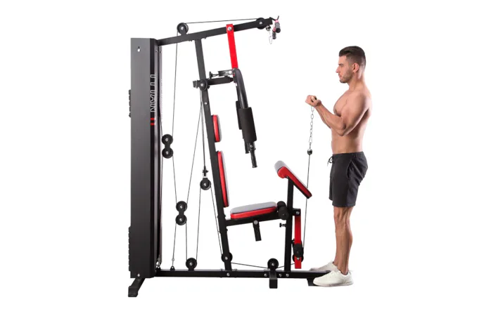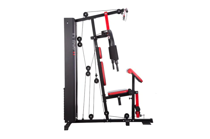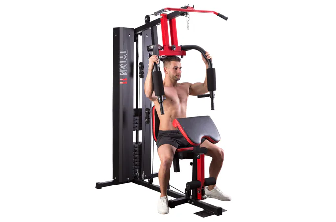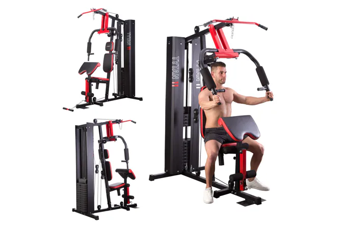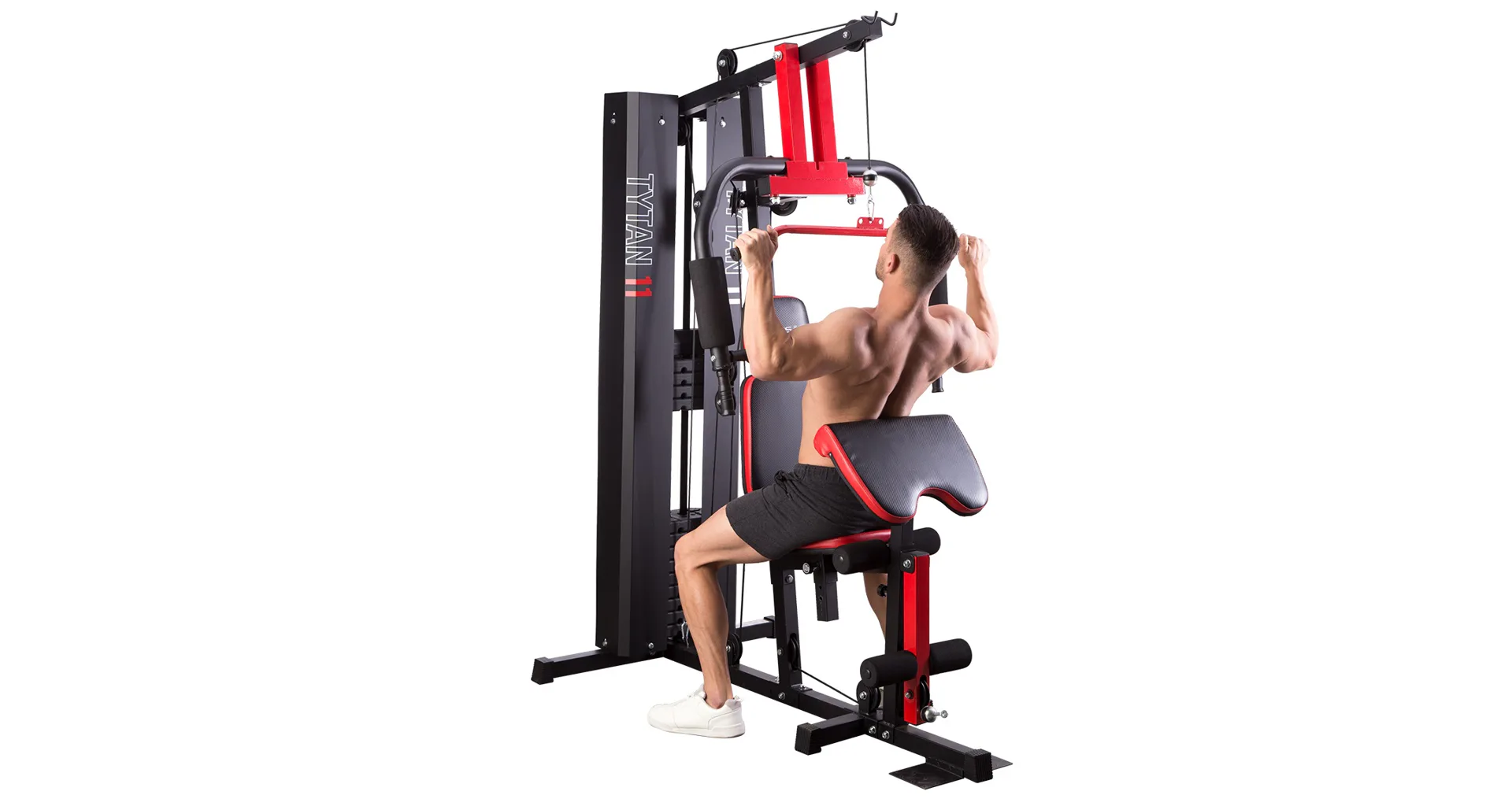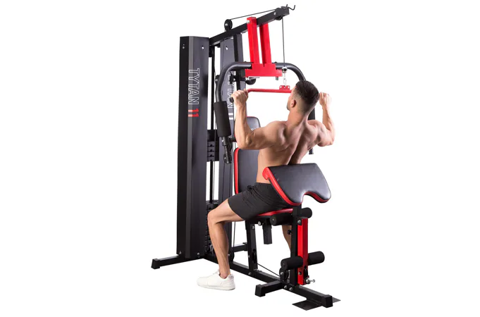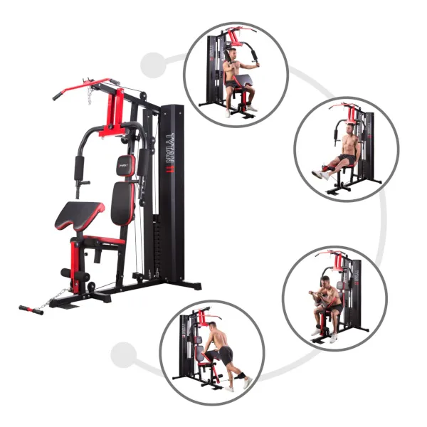 Posilovací věž HMS Tytan 11 je multifunkční nástroj pro komplexní trénink v domácích podmínkách. Konstrukce je vyrobena z kvalitní oceli. Rám je profilován, aby byl stabilní a vydržel maximální zatížení. Čalounění sedáku, opěry a modlitebníku je ušito z pevného materiálu, který odolá oděru a vlhkosti. Pro poutavý a moderní vzhled byla zvolena kombinace červené a karbonu.Tréninkem na Tytanu 11 můžeme posilovat téměř všechny svalové skupiny. Tlaky, motýlek, horní kladka, spodní kladka, modlitebník, hrazda a předkopávání nám umožňují trénovat svaly ramen, hrudníku, zad, horních a dolních končetin.Posilovací věž Tytan 11 je komplexní stroj, který nezabírá mnoho místa a díky nastavitelnému sedáku a modlitebníku se přizpůsobí každé postavě. Zátěž si můžeme nastavit v rozsahu od 4,8 do 67 kilogramů pomocí snadného přesunutí jistícího kolíku. Závaží je odstupňováno po 4,8 kilogramech.