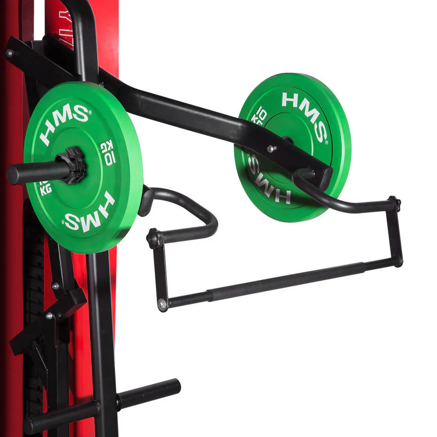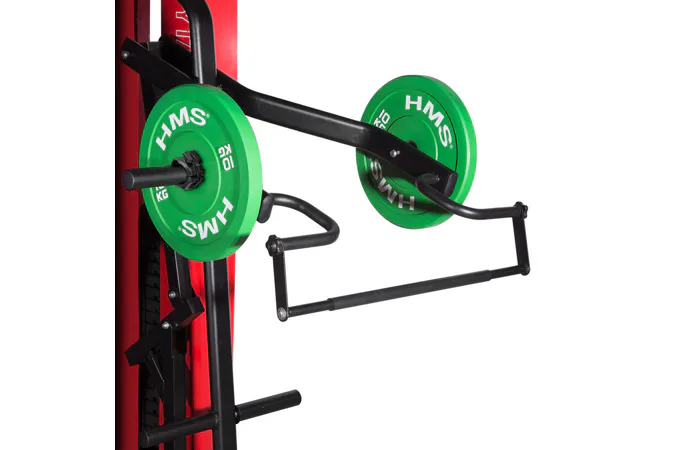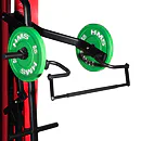 Druhé stanoviště je vybaveno rameny s nastavitelným dorazem. Stanoviště využijete k posilování horní poloviny těla pomocí různých tlaků od dřepů po bechpress na lavičce, která je součástí dodávky. V balení také naleznete adaptér, který lze přišroubovat k ramenům a nahrazuje trénink s klasickou osou. Jako závaží slouží volná závaží, v tomto případě olympijské kotouče, které je potřeba zakoupit samostatně.