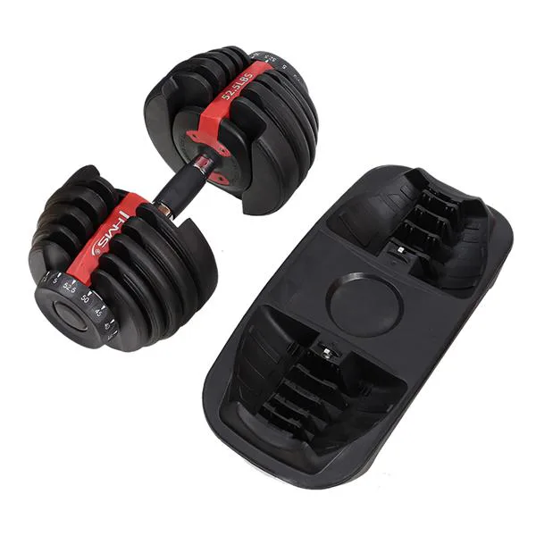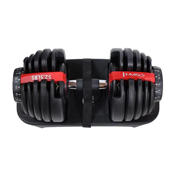 Variabilní nastavitelná činka je skvělým řešením pro trénink i pro náročnější uživatele. Činky jsou optimálním řešením, jednoduše si na čince pouhým pootočením nastavíte s jakou váhou potřebujete pracovat a můžete začít. Závaží od 2,5 do 24 kg nabízí dostatečnou variabilitu k procvičení většiny cviků. Variabilní nastavitelná činka má ergonomická rukojeť a zaručuje pohodlnost při cvičení, bezpečný trénink zajišťuje blokovací mechanismus. Samotná hmotnost lze upravit pouze v okamžiku kdy je činky uložena v základním stojanu, který je samozřejmě součástí balení. Všechny váhové desky jsou potaženy termoplastickým materiálem, který chrání Vaši podlahu před poškrábáním, ke kterému by během cvičení mohlo dojít. Tato ochrana také minimalizuje hluk, který normálně vzniká při kontaktu činky s ostatními materiály v místnosti. Upozornění: veškerá váha závaží je uváděna v librách (lbs). 1 libra = 0,45 kg