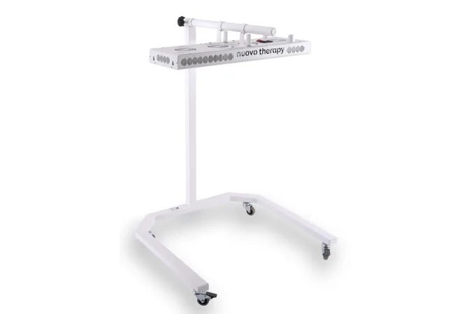 Horizontální stojan na fotobiomodulační panely Nuovo Therapy vhodný pro modely RD1000, RD1500 a RD6000. Přídavné lišty jsou schopny na stojan naráz upevnit až 4 ks RD1000 nebo 4 ks RD1500, popřípadě 1 ks RD6000.