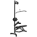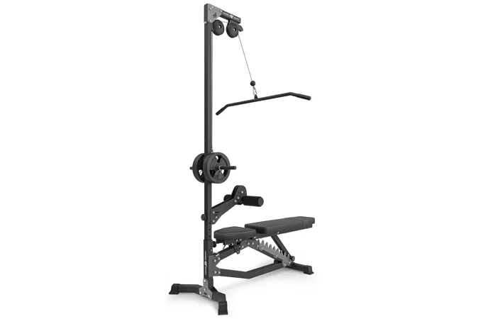 Dobrý den, výrobce uvádí maximální zatížení kladky 130 kg, což nepovažuji úplně za reálné, nicméně věřím, že s cca 50-70 kg na lavici cvičit ještě půjde, což je patrně dostatečné. Osobně jsem to ale v reálu nezkoušel, tuto kladku nemáme na prodejně fyzicky vystavenou.