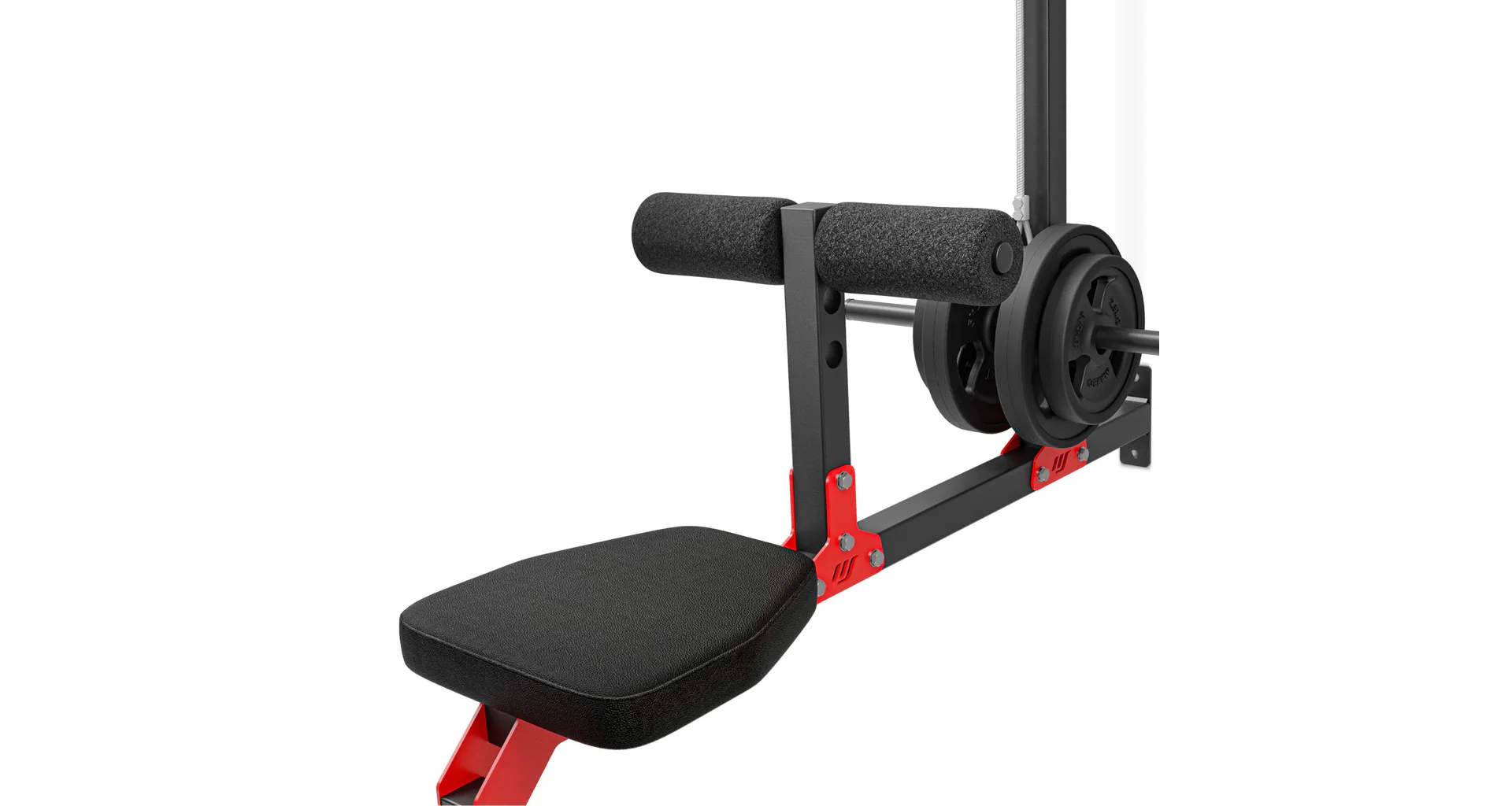 Robustní ocelové nášlapy slouží k zapření během tréninku se spodní kladkou a zároveň zamezují zvedání konstrukce. Zarážka nohou je nastavitelná do 3 úrovní a je osazena válci z EVA pěny pro maximální komfort. Pohodlné polstrování je vyrobeno ze syntetické kůže.