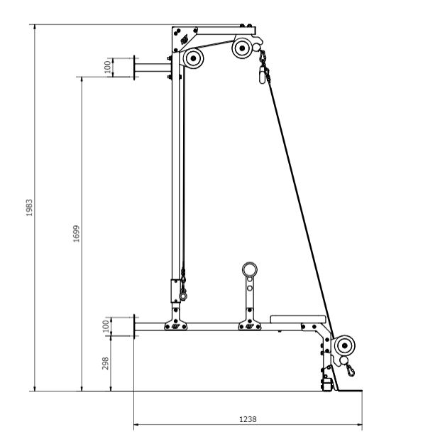 Konstrukce je vyrobena z ocelových profilů 40 x 40 milimetrů a jednotlivé díly jsou vyráběny na precizní CNC strojích, tento postup je zárukou snadné montáže a výslednou vysokou kvalitou produktu. Posilovací systém tvoří 3 kladky, které jsou osazeny kuličkovými ložisky a 2 ocelová lana opatřená gumovými dorazy. V základní poloze je MH-W102 2.0 sestaven jako horní kladka, pro použití jako dolní kladka, je potřeba protáhnout druhé lano přes spodní řemenici a nahoře jej spojit s horním lanem pomocí karabiny. MH-W102 2.0 má pouze jedno místo pro závaží, tím je pojezd v zadní části konstrukce, který je osazen dvěma trny o průměru 25 milimetrů. Jako zátěž tedy můžete použít jak olympijské, tak obyčejné kotouče do hmotnosti až 140 kilogramů. Konstrukci je potřeba připevnit ke zdi. Kotvící materiál není součástí dodávky a je potřeba zvolit správný typ podle materiálu podkladu.