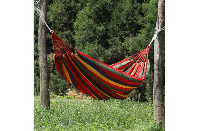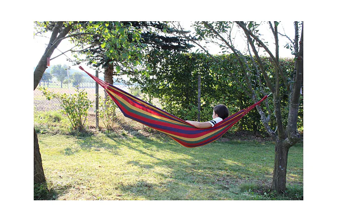 Houpací síť hamak Merco Garden, je perfektní společník pro letní dny jen tak na relax, ale i na spánek v přírodě při zavěšení mezi stromy. Je vyrobena ze 100% bavlny včetně integrovaného přenosného vaku se stahovací šňůrkou. Svůj elipsovitý tvar má díky staženým koncům pevnou nylonovou šňůrou s robustními karabinami, které slouží k přichycení za příslušné popruhy.