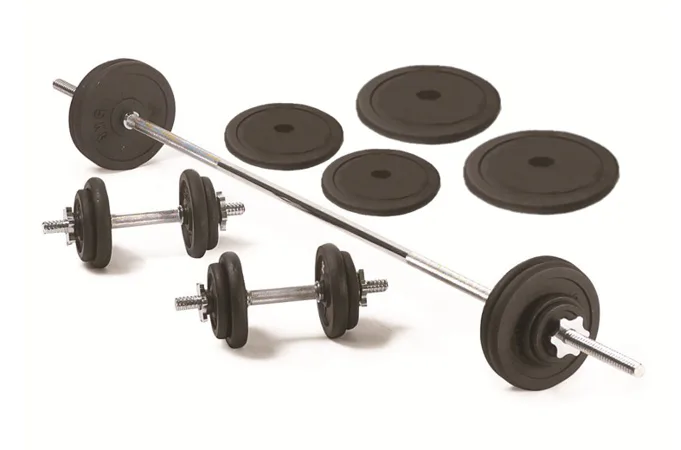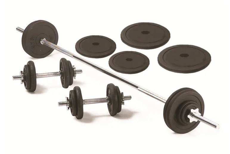 Variabilní činková sada Housefit je vyjímečná především díky obouruční hřídely, která má délku 1600mm. Obouruční hřídel i dvě jednoruční osy 350mm, jsou opatřeny kvalitní galvanickou povrchovou úpravou NiklChrom, odolnou vůči opotřebení. Litinové kotouče s vrtáním 30mm jsou opatřeny černým matným lakem. Celková vaha setu je přibližně 80kg, váhu lze rozšířit o další kotouče se shodným průměrem vrtání 30mm. Skladba sady: