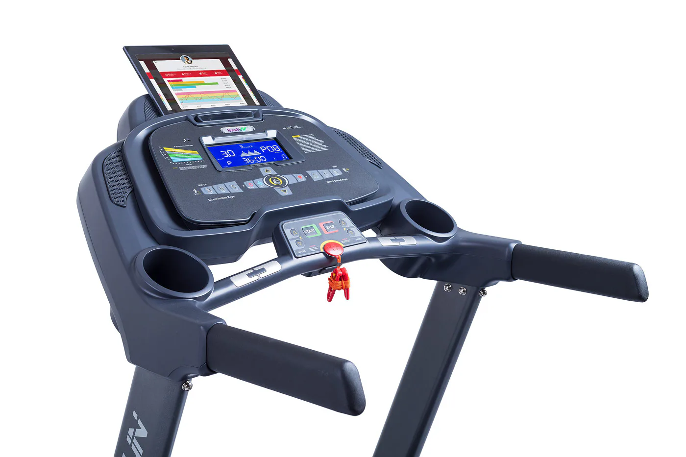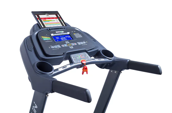 Odpružená běžecká plocha má rozměr 46 x 135 cm, pás je vybaven elektronickou regulací rychlosti v rozsahu 0 až 16 km/h s bezpečnostní pojistkou. Simulaci běhu v terénu či do kopce umožňuje elektronicky nastavitelný sklon až do 15%.