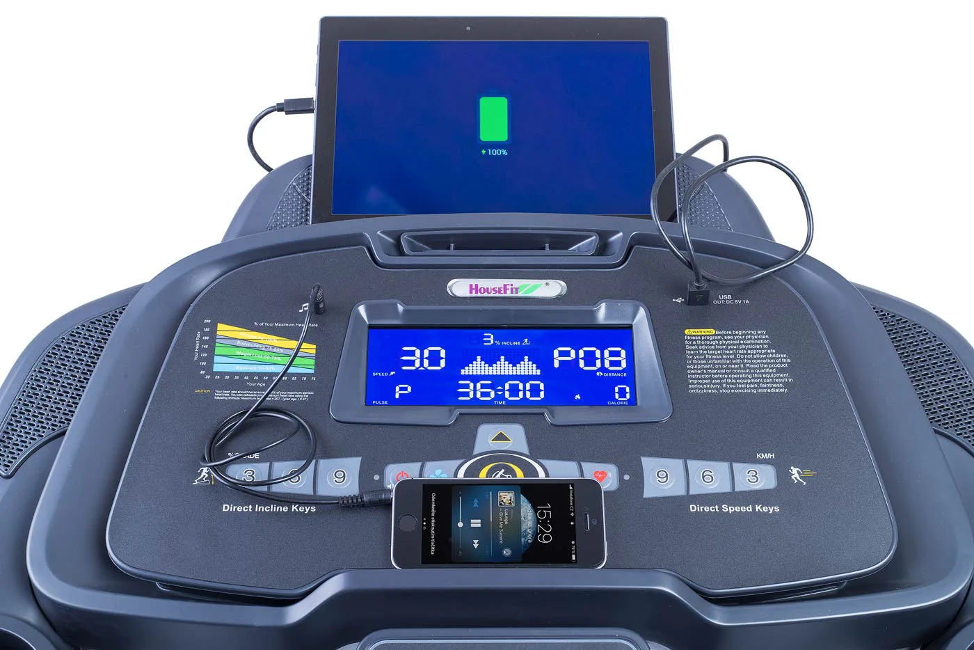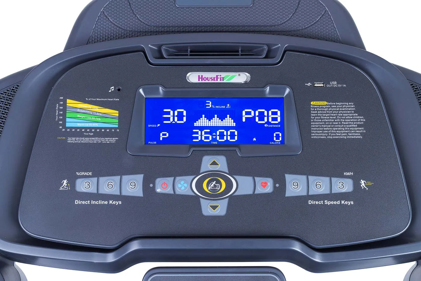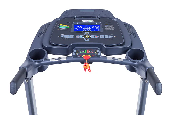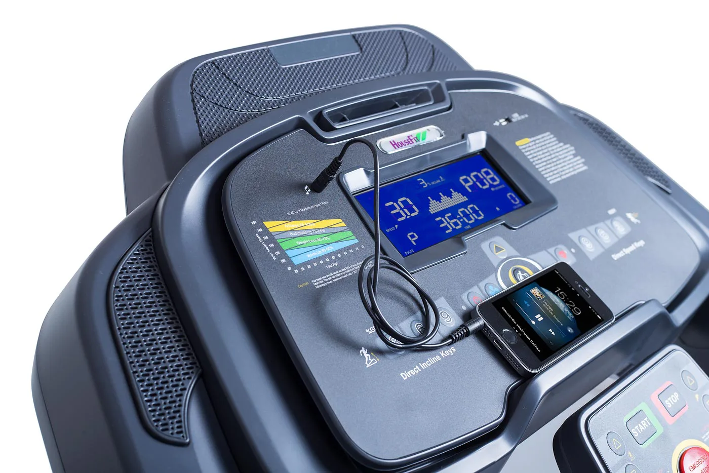 HOUSEFIT SPIRO 20 iRun nabízí snadno ovladatelný a přehledný počítač s podsvíceným 7" LCD displejem, který zobrazuje základní hodnoty: čas, vzdálenost, sklon, rychlost, spotřeba kalorií a měření tepové frekvence.
