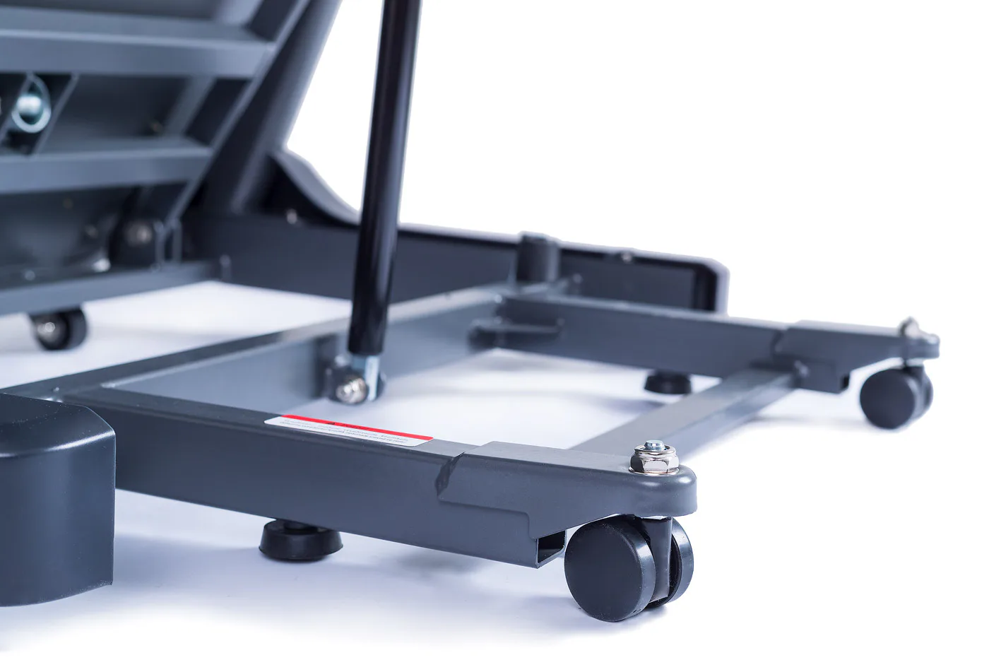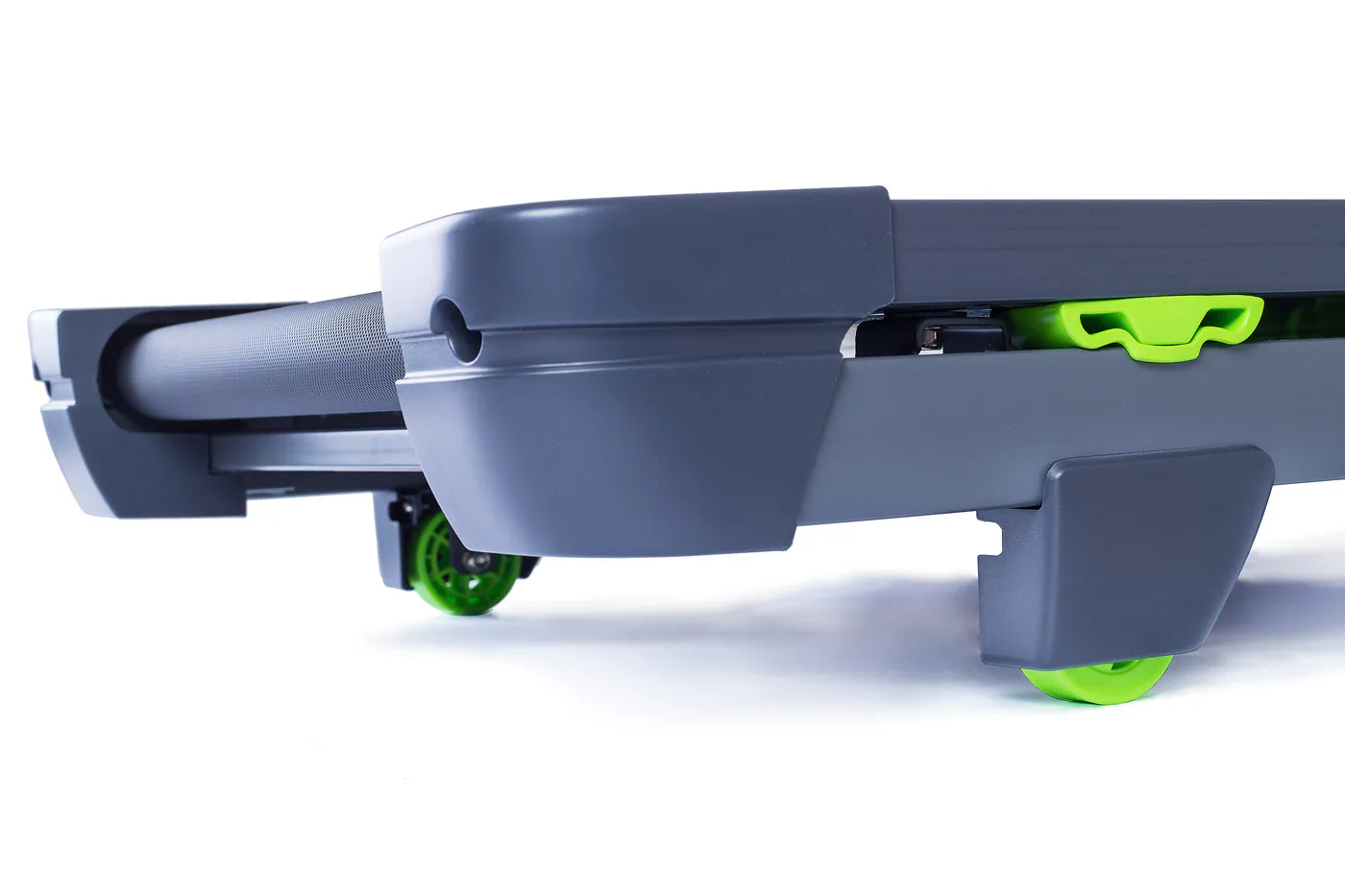 Pás lze snadno sklopit a uložit díky přepravním kolečkům.