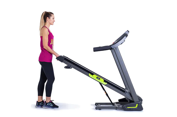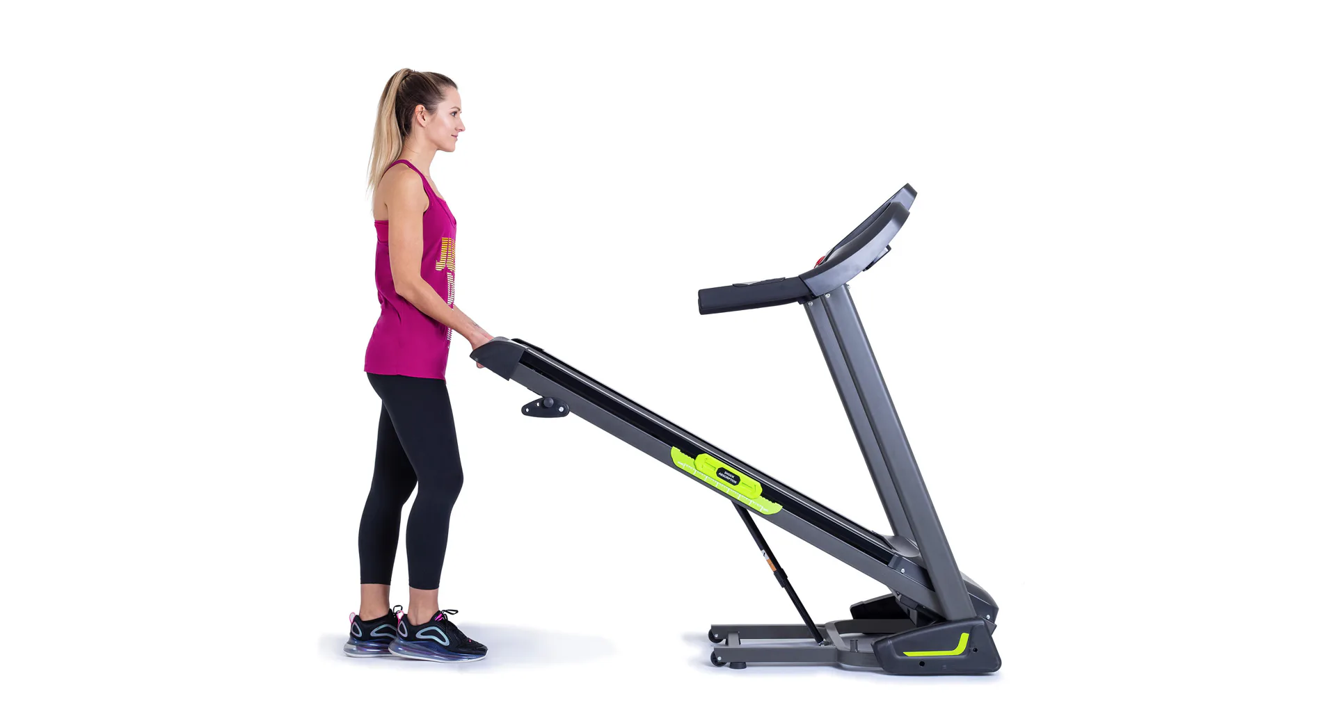 Integrovaná kolečka v přední části stroje a možnost složení vám usnadní manipulaci a můžete tak pás přemístit, kam budete potřebovat.