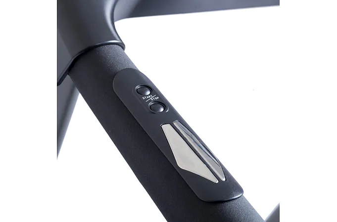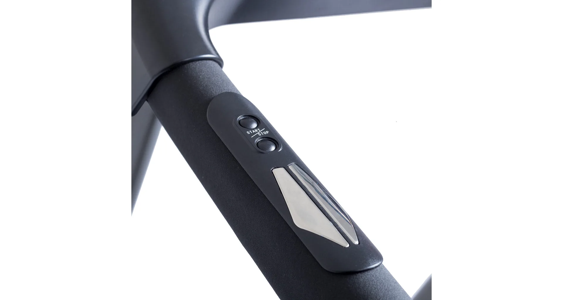 V madlech jsou integrovaná madla s dlaňovými snímači tepové frekvence a ovládání rychlosti.