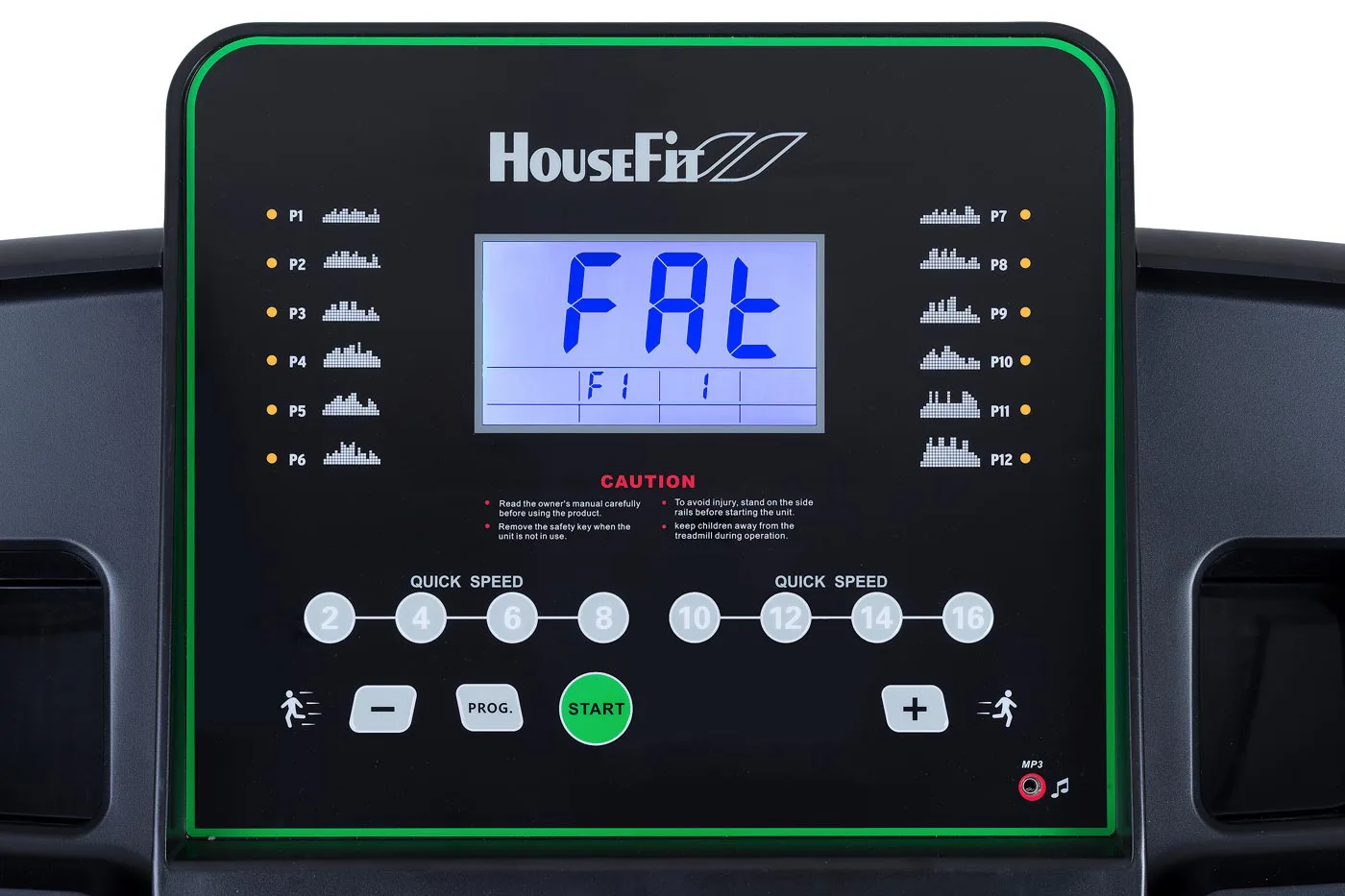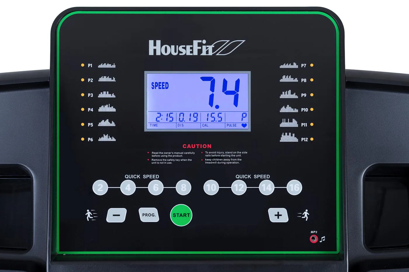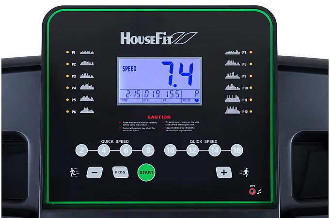 Běžecký pás HouseFit Tempo 40 disponuje přehledným LCD displejem, který vyobrazuje všechny základní údaje jako jsou čas, rychlost, vzdálenost, spálené kalorie a tepovou frekvenci.