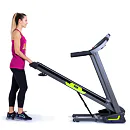 Vaše klouby při běhání budou v bezpečí díky speciálnímu rámovému odpružení prostřednictvím gumových silentbloků a pro snadnou manipulaci s pásem je možné pás složit do vertikální polohy a přemístit díky transportním kolečkům.